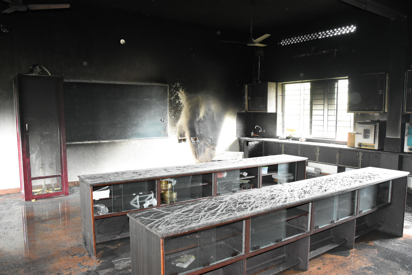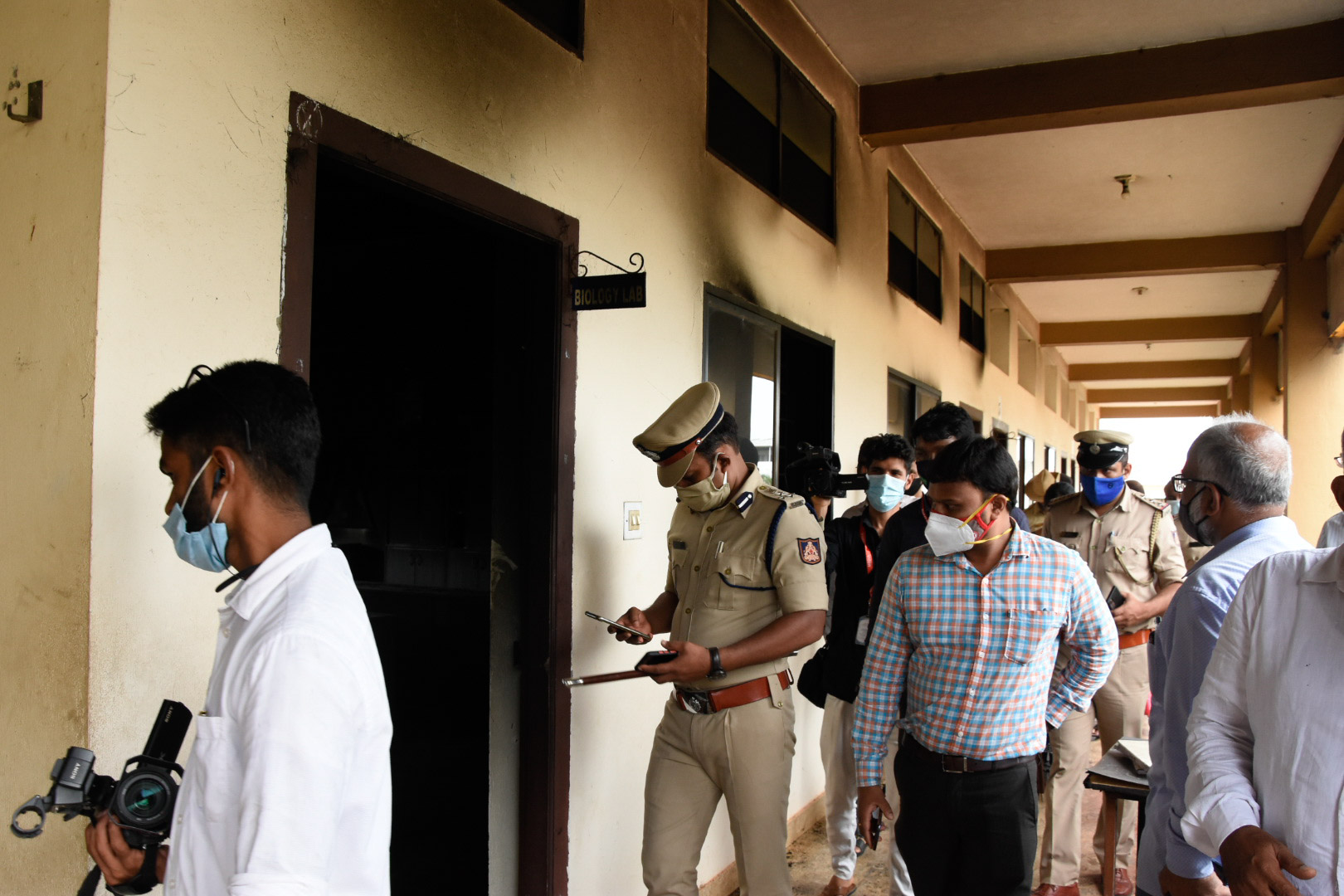 ಶಾಲೆಯ ಲ್ಯಾಬ್ನಲ್ಲಿ ಬೆಂಕಿ ಕಾಣಿಸಿಕೊಂಡಿದೆ. ಈ ವೇಳೆ ತಕ್ಷಣ ಪರೀಕ್ಷಾ ಕೇಂದ್ರದ ಸಿಬ್ಬಂದಿ ವಿದ್ಯಾರ್ಥಿಗಳನ್ನು ಇನ್ನೊಂದು ಕಟ್ಟಡಕ್ಕೆ ಸ್ಥಳಾಂತರ ಮಾಡಿದ್ದಾರೆ. ವಿದ್ಯುತ್ ಶಾರ್ಟ್ ಸರ್ಕ್ಯೂಟ್ನಿಂದ ಬೆಂಕಿ ತಗುಲಿರಬಹುದೆಂದು ಶಂಕಿಸಲಾಗಿದೆ.