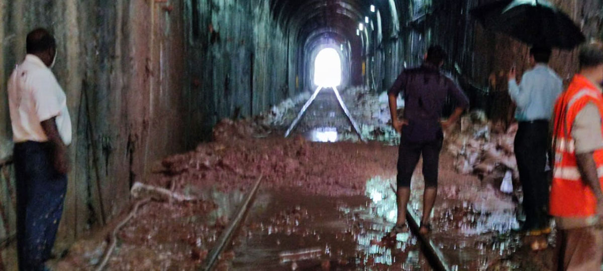 ಸುರಂಗದಲ್ಲಿ ರೈಲ್ವೆ ಹಳಿ ಮೇಲೆ ಬಿದ್ದ ಮಣ್ಣು: ಕೊಂಕಣ ರೈಲ್ವೆ ಮಾರ್ಗದ ಸಂಚಾರ ಮತ್ತೆ ವ್ಯತ್ಯಯ