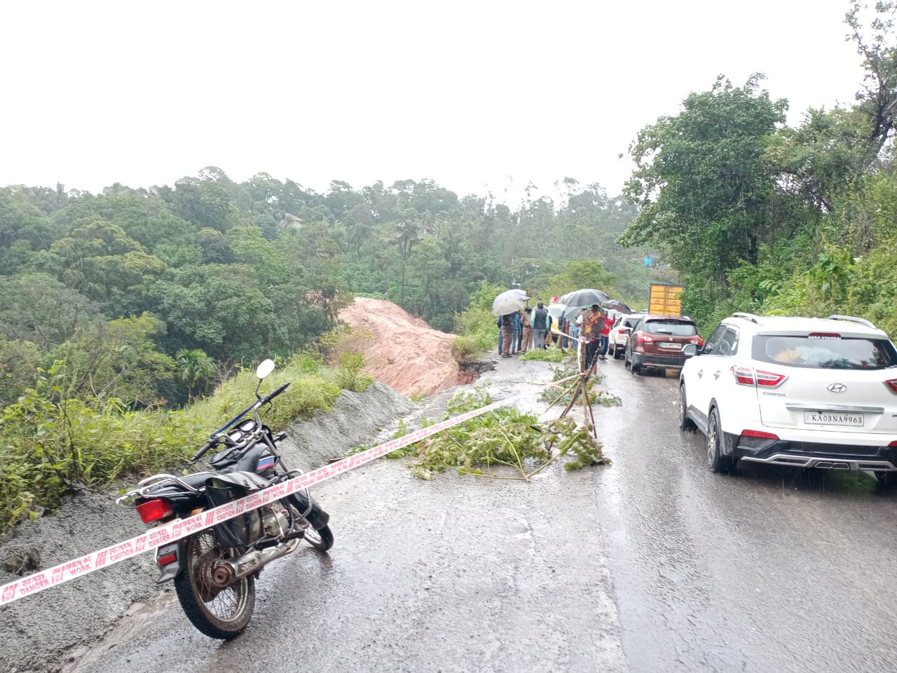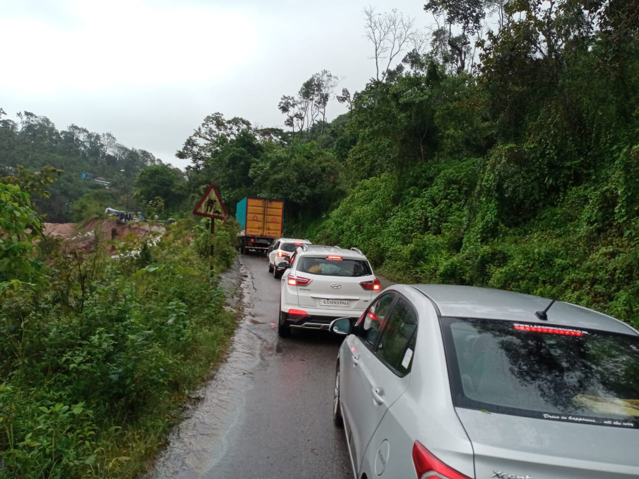 ಸಕಲೇಶಪುರ ತಾಲೂಕಿನಲ್ಲಿ ಭಾರೀ ಗಾಳಿ- ಮಳೆಯಾಗಿದ್ದು, ಇದರಿಂದಾಗಿ ಭೂಕುಸಿತ ಉಂಟಾಗಿದೆ. ಹೆದ್ದಾರಿಯಲ್ಲಿ ವಾಹನ ಸಂಚಾರಕ್ಕೆ ತಡೆಯುಂಟಾಗಿದ್ದು, ರಸ್ತೆಯ ಇಕ್ಕೆಲಗಳಲ್ಲಿ ವಾಹನಗಳ ಸರತಿ ಸಾಲು ಕಂಡು ಬರುತ್ತಿವೆ.