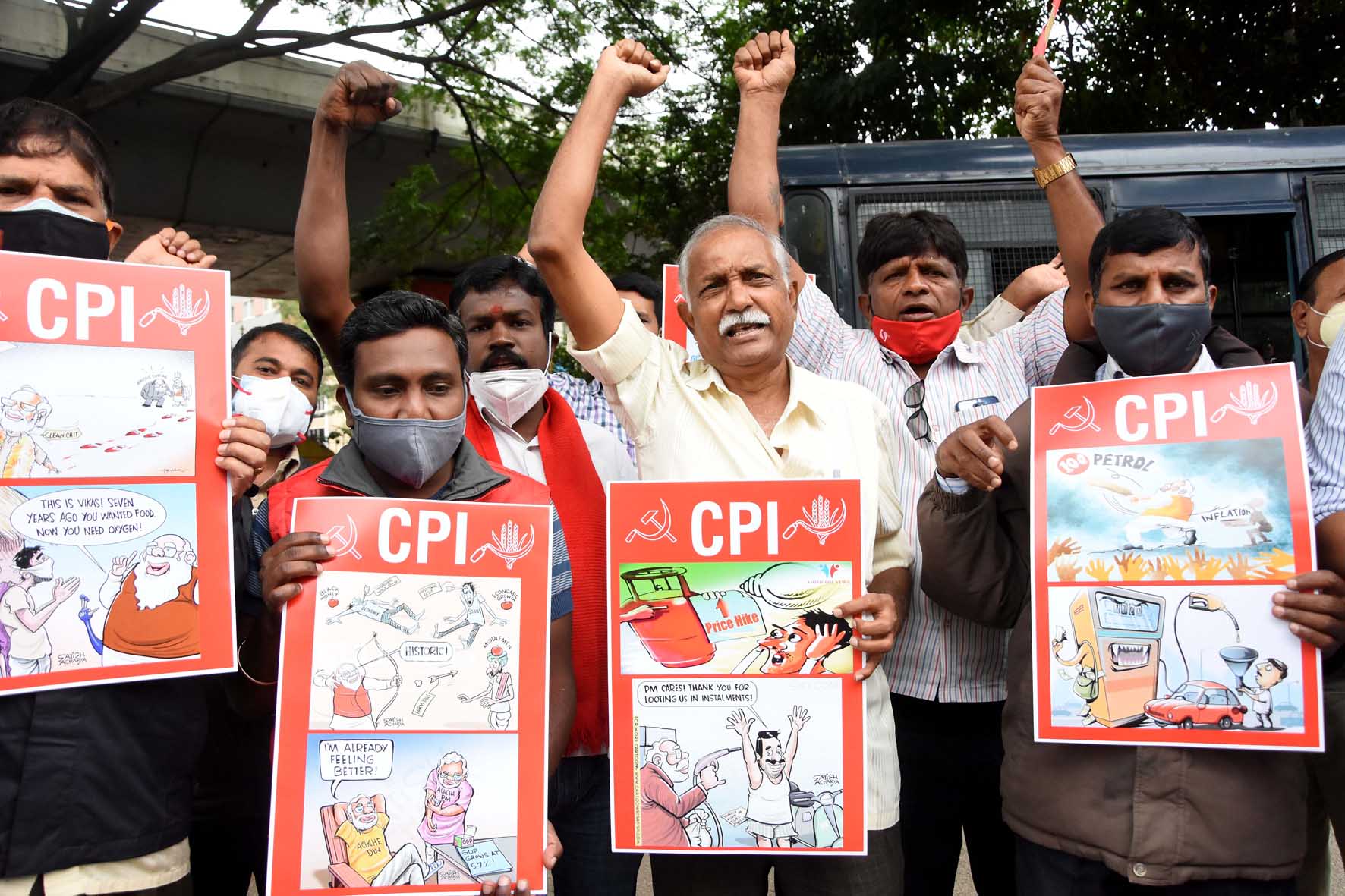 ಬೆಂಗಳೂರು: ಅಬಕಾರಿ ಸುಂಕ ಕಡಿತಗೊಳಿಸಲು ಒತ್ತಾಯಿಸಿ ಸಿಪಿಐ ಪ್ರತಿಭಟನೆ