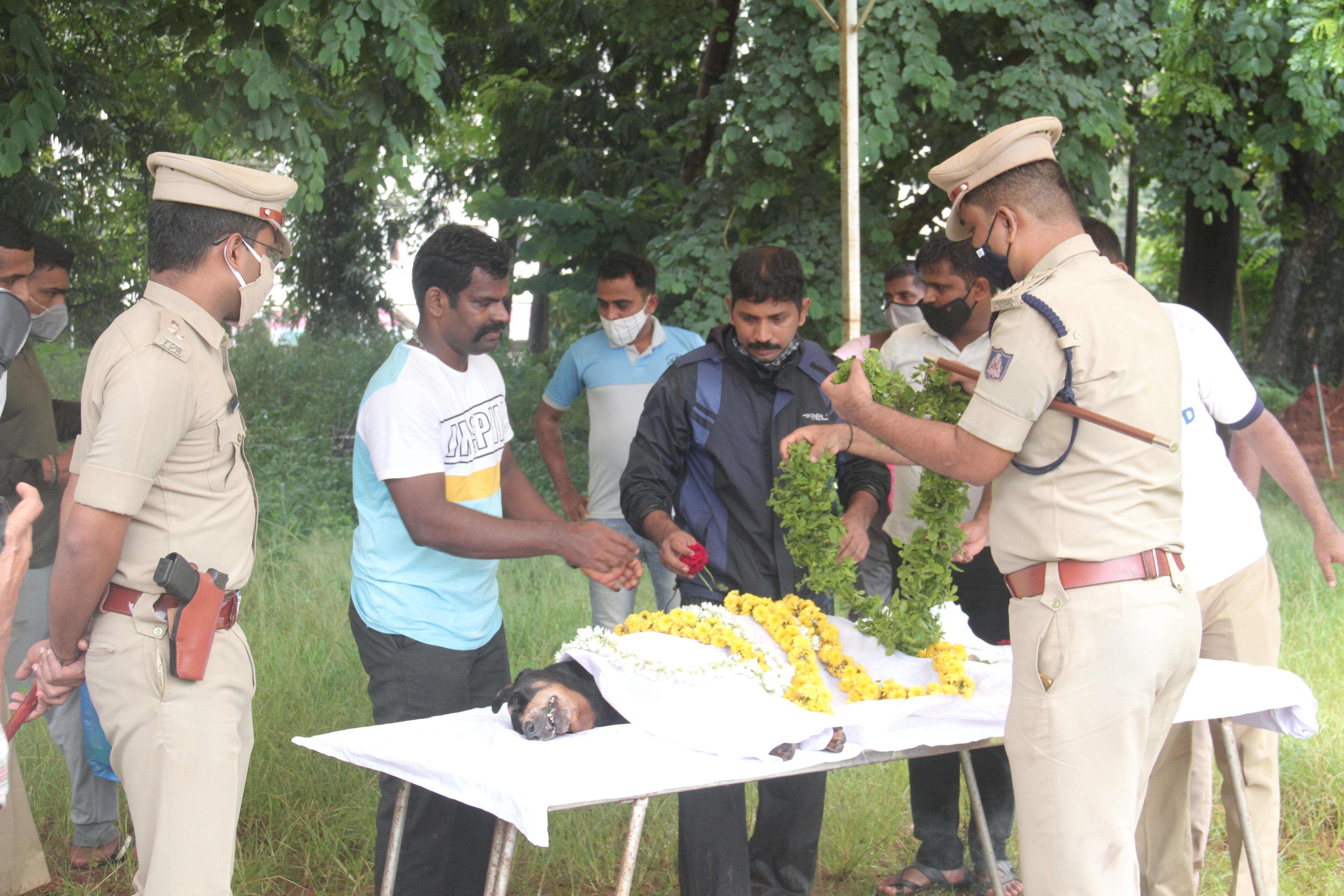 ಬಿಳಿ ವಸ್ತ್ರದಲ್ಲಿ ಶ್ವಾನ ಸುಧಾಳ ಮೃತದೇಹವನ್ನು ಸುತ್ತಿ, ಹೂವಿನಿಂದ ಅಲಂಕರಿಸಿ ಪೊಲೀಸ್ ವಾದ್ಯ, ತೋಪು ಹಾರಿಸುವಿಕೆ ಯೊಂದಿಗೆ ಪೊಲೀಸ್ ಆಯುಕ್ತ ಎನ್. ಶಶಿಕುಮಾರ್, ಡಿಸಿಪಿ ಹರಿರಾಂ ಶಂಕರ್ ಹಾಗೂ ಇತರ ಹಿರಿಯ ಅಧಿಕಾರಿಗಳು, ಸಿಬ್ಬಂದಿಯ ಉಪಸ್ಥಿತಿಯಲ್ಲಿ ಗೌರವ ವಂದನೆಯನ್ನು ಸಲ್ಲಿಸಲಾಯಿತು. ಬಳಿಕ ಮೃತದೇಹವನ್ನು ಪೊಲೀಸ್ ಮೈದಾನದ ಅಂಚಿನಲ್ಲಿ ಹೂಳುವ ಮೂಲಕ ಅಂತ್ಯ ಸಂಸ್ಕಾರವನ್ನು ನೆರವೇರಿಸಿ, ತುಳಸಿ ಗಿಡವನ್ನು ನೆಟ್ಟು ನೀರೆರೆಯಲಾಯಿತು.