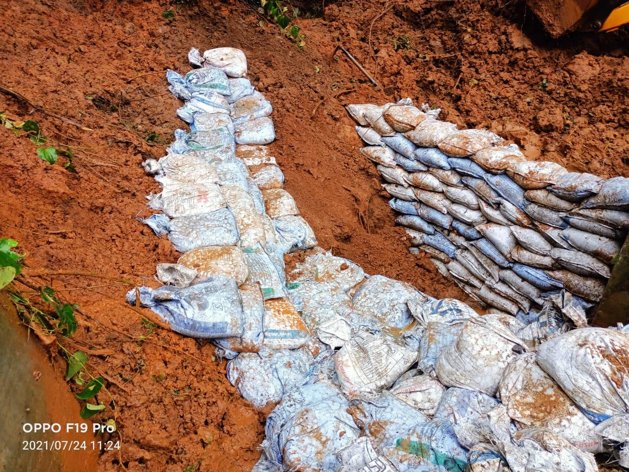 ಕುಸಿತಗೊಂಡಿರುವ ಪ್ರದೇಶದಲ್ಲಿ ಇನ್ನಷ್ಟು ಕುಸಿತ ಸಂಭವಿಸುವುದನ್ನು ತಡೆಯಲು ಶನಿವಾರದಿಂದ ಮರಳಿನ ಚೀಲಗಳ ತಡೆಗೋಡೆ ಅಳವಡಿಸುವ ಕಾಮಗಾರಿ ಆರಂಭವಾಗಿದೆ. ಜೆಸಿಬಿ ಮೂಲಕ ಅಗತ್ಯವಿರುವಲ್ಲಿ ಚರಂಡಿಗಳನ್ನು ನಿರ್ಮಿಸಲಾಗುತ್ತಿದೆ. ಮಳೆ ಇರುವ ಕಾರಣ ಇಲ್ಲಿ ಪೂರ್ಣಪ್ರಮಾಣದ ಕಾಮಗಾರಿ ನಡೆಸಲು ಸಾಧ್ಯವಿಲ್ಲದಿರುವುದರಿಂದ ಈಗ ತಾತ್ಕಾಲಿಕವಾಗಿ ವ್ಯವಸ್ಥೆಗಳನ್ನು ಮಾಡಲಾಗುತ್ತಿದೆ ಎಂದು ತಿಳಿಸಿದ್ದಾರೆ.