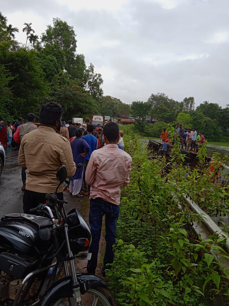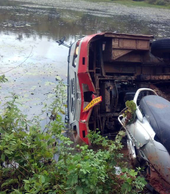 ಶಿವಮೊಗ್ಗ: ಬೈಕ್ ಗೆ ಢಿಕ್ಕಿಯಾಗುವುದನ್ನು ತಪ್ಪಿಸುವ ಯತ್ನದಲ್ಲಿ ಕೆರೆಗೆ ಉರುಳಿದ ಕೆಎಸ್ಸಾರ್ಟಿಸಿ ಬಸ್