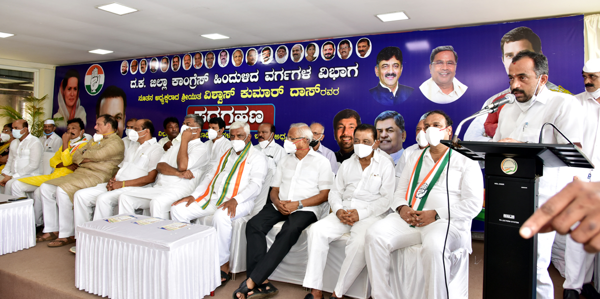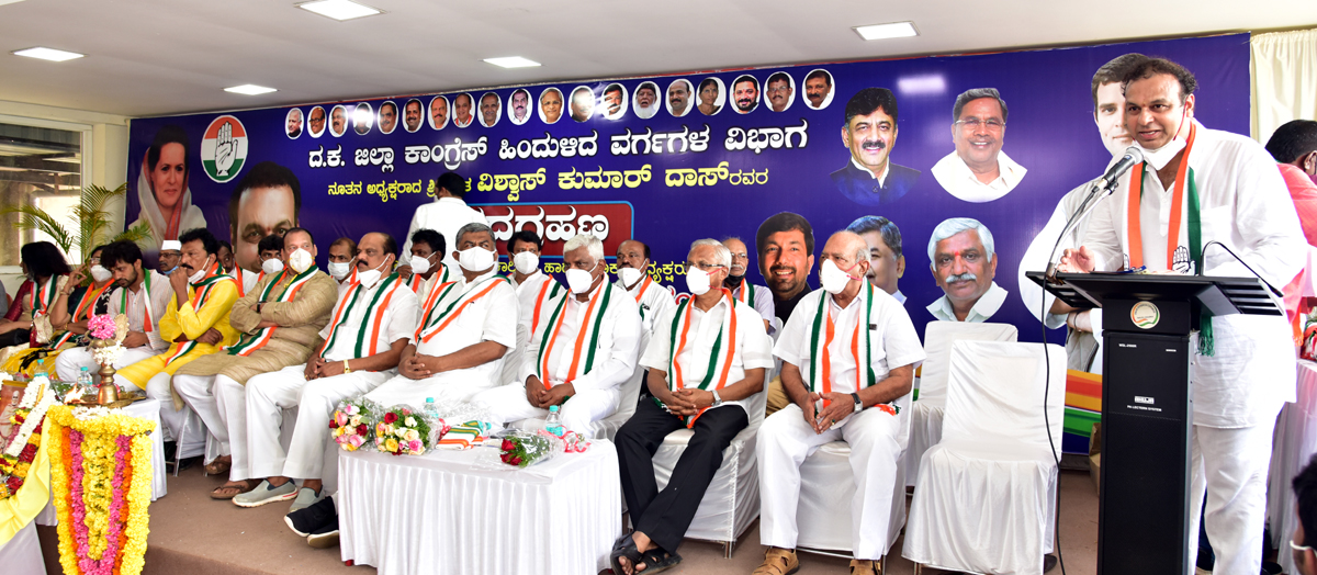 ನಗರದ ಮಲ್ಲಿಕಟ್ಟೆಯಲ್ಲಿರುವ ದ.ಕ. ಜಿಲ್ಲಾ ಕಾಂಗ್ರೆಸ್ ಕಚೇರಿಯಲ್ಲಿ ರವಿವಾರ ಹಿಂದುಳಿದ ವರ್ಗಗಳ ದ.ಕ. ಜಿಲ್ಲಾ ಘಟಕದ ಅಧ್ಯಕ್ಷ ವಿಶ್ವಾಸ್ ಕುಮಾರ್ ದಾಸ್ರ ಪದಗ್ರಹಣ ಕಾರ್ಯಕ್ರಮದಲ್ಲಿ ಪಾಲ್ಗೊಂಡು ಅವರು ಮಾತನಾಡಿದರು.