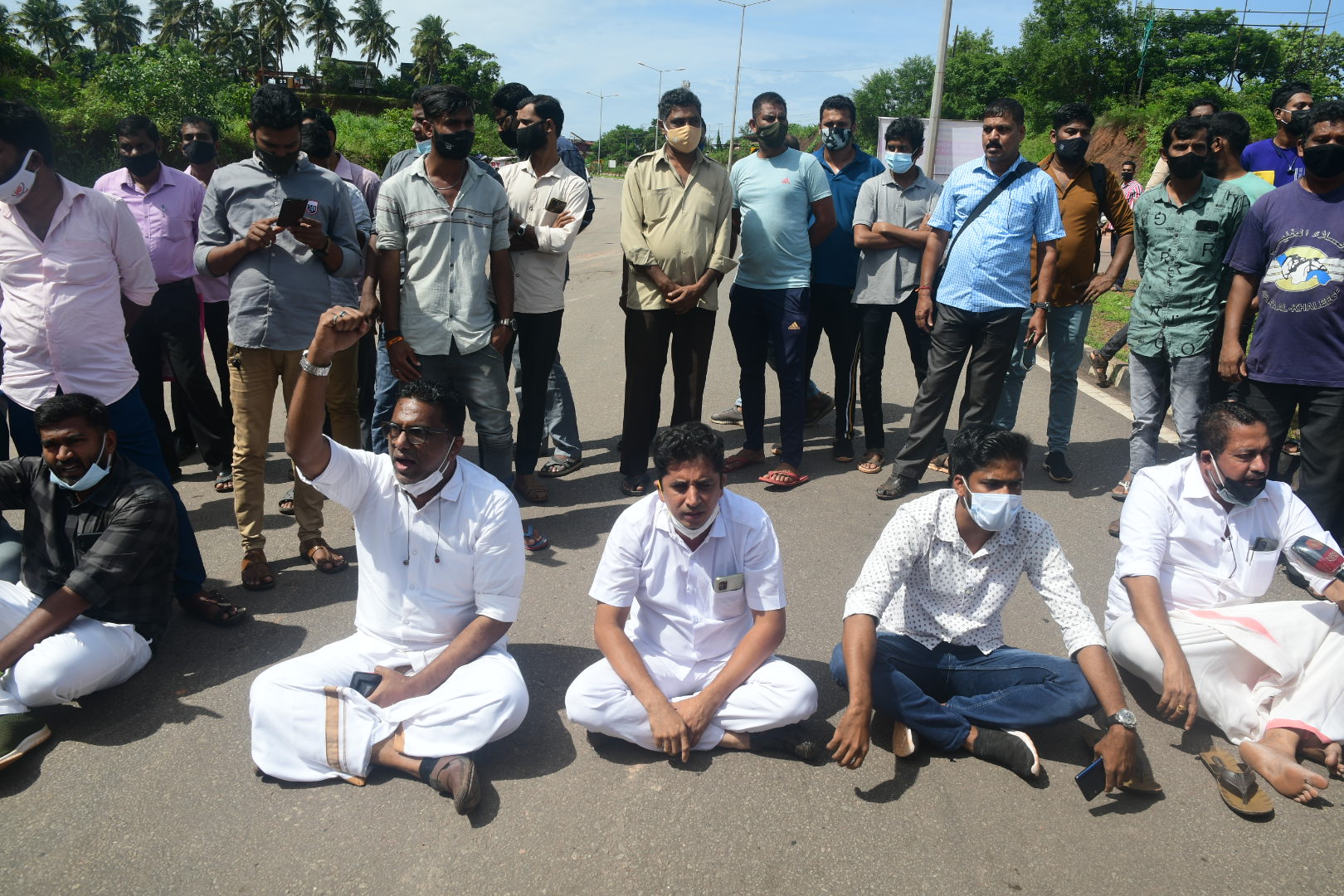ಎಡಿಜಿಪಿ ಪ್ರತಾಪ್ ರೆಡ್ಡಿ ಭೇಟಿ ವೇಳೆ, ಕೇರಳ ಭಾಗದ ರಸ್ತೆ ಬಂದ್ ಮಾಡಿ ಗಡಿಭಾಗದಲ್ಲಿ ಕೇರಳಿಗರು ಪ್ರತಿಭಟನೆ ನಡೆಸಿದರು.