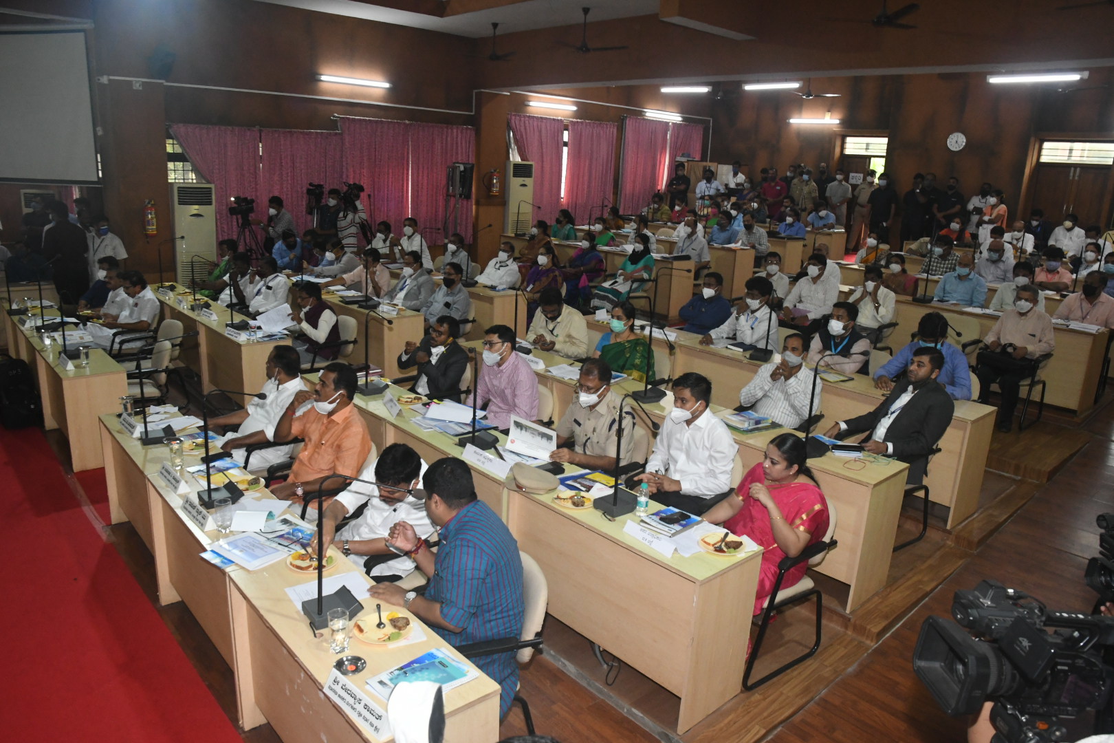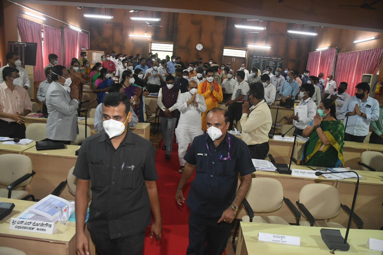 ಮಂಗಳೂರು : ಸಿಎಂ ಬಸವರಾಜ ಬೊಮ್ಮಾಯಿ ಅವರ ಅಧ್ಯಕ್ಷತೆಯಲ್ಲಿ ನಗರದ ಜಿಲ್ಲಾ ಪಂಚಾಯತ್ನ ನೇತ್ರಾವತಿ ಸಭಾಂಗಣದಲ್ಲಿ ಕೋವಿಡ್-19 ನಿಯಂತ್ರಣ ಹಾಗೂ ನಿರ್ವಹಣೆ ಕುರಿತಂತೆ ಪ್ರಗತಿ ಪರಿಶೀಲನಾ ಸಭೆ ಗುರುವಾರ ನಡೆಯಿತು.
