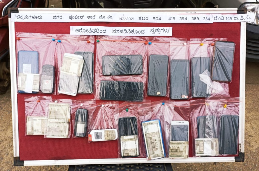 ಪ್ರಕರಣ ಬೆನ್ನತ್ತಿಹೋದ ನಗರ ಠಾಣೆಯ ಪೊಲೀಸರು 6 ಮಹಿಳೆಯರು ಸೇರಿದಂತೆ 13 ಜನರನ್ನು ಬಂಧಿಸಿದ್ದಾರೆ. 3 ಕಾರು, 17 ಮೊಬೈಲ್, 24 ಸಿಮ್, 40670 ರೂ. ನಗದು, 1 ಆಟೊ ಹಾಗೂ 1 ಸ್ಕೂಟಿಯನ್ನು ವಶಕ್ಕೆ ಪಡೆಯಲಾಗಿದೆ ಎಂದು ಜಿಲ್ಲಾ ಪೊಲೀಸ್ ವರಿಷ್ಠಾಧಿಕಾರಿ ಎಂ.ಎಚ್.ಅಕ್ಷಯ್ ತಿಳಿಸಿದ್ದಾರೆ.