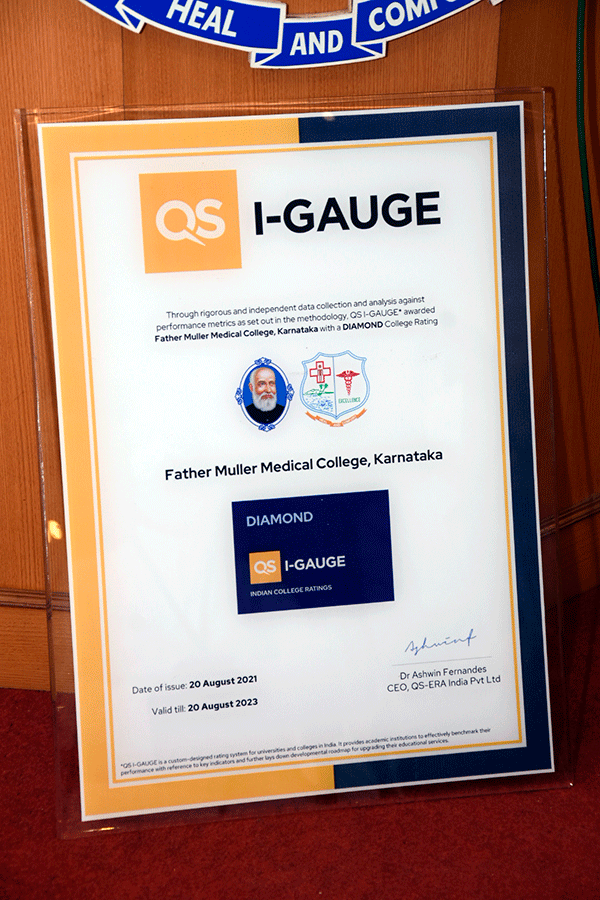 ಫಾದರ್ ಮುಲ್ಲರ್ ಮೆಡಿಕಲ್ ಕಾಲೇಜಿಗೆ ಕ್ಯೂಎಸ್ಐ ಡೈಮಂಡ್ ಗೇಜ್ ಶ್ರೇಯಾಂಕ