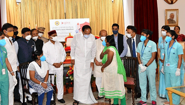 ಬೆಂಗಳೂರು, ಆ.24: ಯೋಜನೆ, ಕಾರ್ಯಕ್ರಮ ಸಂಯೋಜನೆ ಮತ್ತು ಸಾಂಖ್ಯಿಕ ಇಲಾಖೆ, ಸುಸ್ಥಿರ ಗುರಿಗಳ ಸಹಕಾರ ಕೇಂದ್ರ ಹಾಗೂ ಗಿವ್ ಇಂಡಿಯಾ ಪ್ರತಿಷ್ಠಾನದ ಸಹಯೋಗದಲ್ಲಿ ಆಯೋಜಿಸಿದ್ದ ‘ವ್ಯಾಕ್ಸಿನೇಟ್ ಇಂಡಿಯಾ’ ಕಾರ್ಯಕ್ರಮಕ್ಕೆ ಉಪರಾಷ್ಟ್ರಪತಿ ವೆಂಕಯ್ಯ ನಾಯ್ಡು ಇಂದು ರಾಜಭವನದಲ್ಲಿ ಚಾಲನೆ ನೀಡಿದರು.