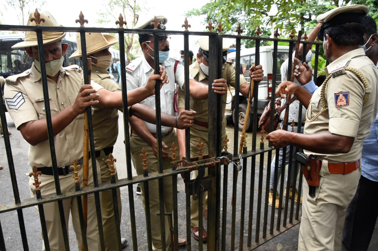 ಸಿಎಫ್ಐ ಕಾರ್ಯಕರ್ತರು ಪ್ರತಿಭಟನೆ ನಡೆಸುವ ಬಗ್ಗೆ ಮಾಹಿತಿ ಪಡೆದಿದ್ದ ಪೊಲೀಸರು ಮಂಗಳಾ ಸಭಾಂಗಣದ ಸುತ್ತಮುತ್ತಲಿನ ರಸ್ತೆಯನ್ನು ತಡೆದು ವಾಹನಗಳ ಸಂಚಾರಕ್ಕೆ ಅವಕಾಶ ನೀಡಿರಲಿಲ್ಲ ಎಂದು ತಿಳಿದುಬಂದಿದೆ.