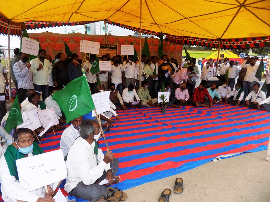 ರೈತ ಸಂಘ, ವಿವಿಧ ರಾಜಕೀಯ ಪಕ್ಷಗಳ ನೇತೃತ್ವದಲ್ಲಿ ಸಂತ್ರಸ್ಥರಿಂದ ಧರಣಿ