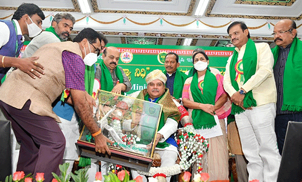 ಪ್ರಾಸ್ತಾವಿಕವಾಗಿ ಮಾತನಾಡಿದ ರಾಜ್ಯ ಕೃಷಿ ಸಚಿವ ಬಿ.ಸಿ.ಪಾಟೀಲ್, ಸಂತುಷ್ಟ ರೈತನಿಂದ ಸಮೃದ್ಧ ಭಾರತ ಸಾಧ್ಯವಾಗಿದ್ದು, ಈ ನಿಟ್ಟಿನಲ್ಲಿ ಕೇಂದ್ರ ಸರ್ಕಾರದ ಜೊತೆ ಕರ್ನಾಟಕ ಸರ್ಕಾರವು ಕಟಿಬದ್ಧವಾಗಿ ಶ್ರಮಿಸುತ್ತಿದೆ. ಬೆಳೆಹಾನಿ, ಬರ, ಪ್ರವಾಹ ಇದೆಲ್ಲದರ ಸಂಘರ್ಷದ ನಡುವೆ ರೈತ ಬದುಕಬೇಕಾಗುವಂತಹ ಸ್ಥಿತಿ ತಪ್ಪಿಸಲು ಬಸವರಾಜ ಬೊಮ್ಮಾಯಿ ಅವರು ಮುಖ್ಯಮಂತ್ರಿ ಆದ ಮೊದಲ ದಿನವೇ 'ವಿದ್ಯಾನಿಧಿ' ರೈತ ಮಕ್ಕಳಿಗೆ ಉನ್ನತ ಶಿಕ್ಷಣಕ್ಕಾಗಿ ವಿದ್ಯಾರ್ಥಿವೇತನ ಯೋಜನೆ ಘೋಷಿಸಿದ್ದಾರೆ. 18-20 ಲಕ್ಷ ರೈತ ವಿದ್ಯಾರ್ಥಿಗಳು ಈ ವಿದ್ಯಾನಿಧಿ ಯೋಜನೆಯ ಫಲ ಪಡೆಯಲಿದ್ದಾರೆ ಎಂದರು.