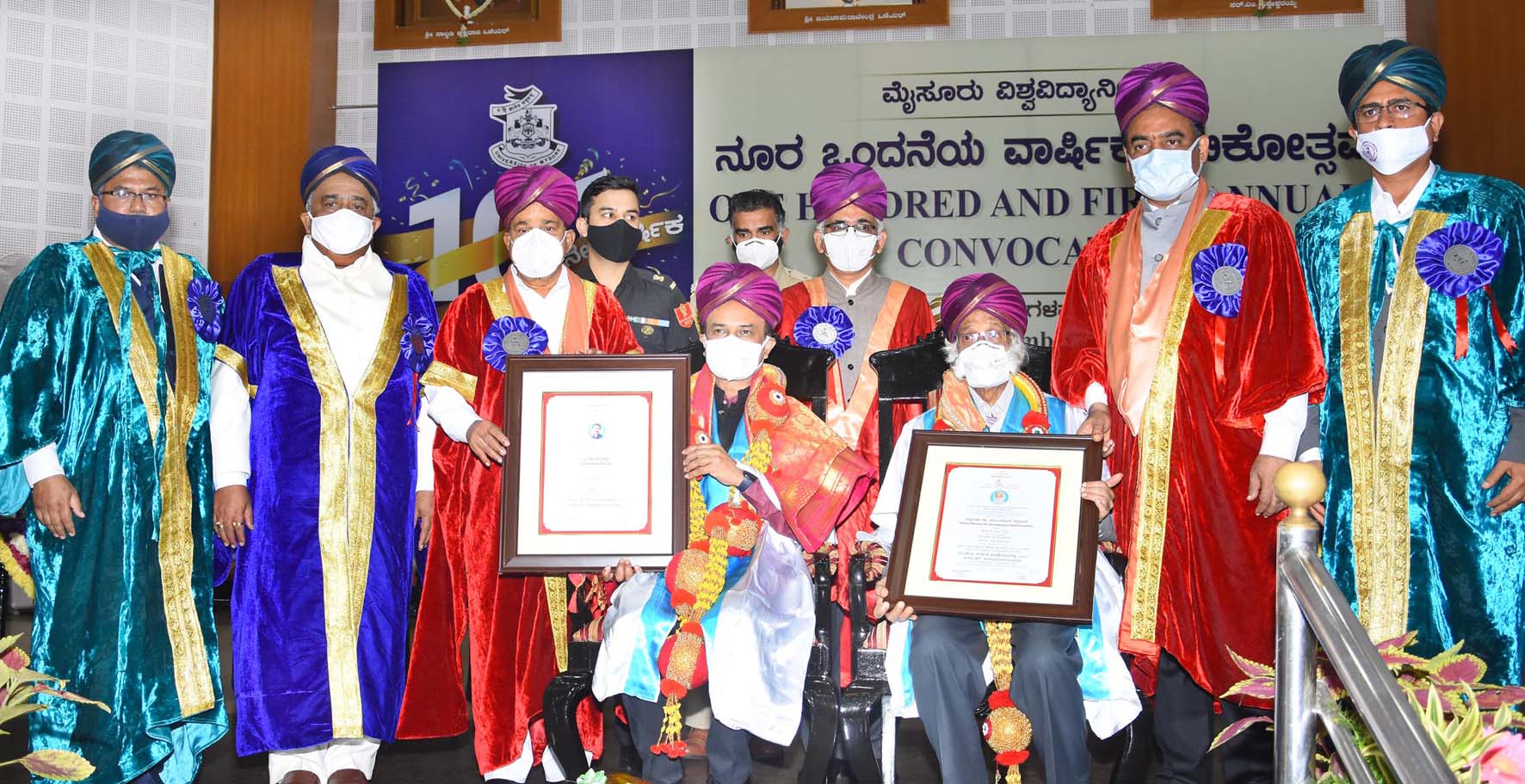 ಮೈಸೂರು,ಸೆ.7: ಶತಮಾನೋತ್ಸವ ಪೂರೈಸಿರುವ ಮೈಸೂರು ವಿಶ್ವವಿದ್ಯಾನಿಲಯದ 101ನೇ ಘಟಿಕೋತ್ಸವವು ಮಂಗಳವಾರ ಕ್ರಾಫರ್ಡ್ ಭವನದಲ್ಲಿ ನಡೆಯಿತು.