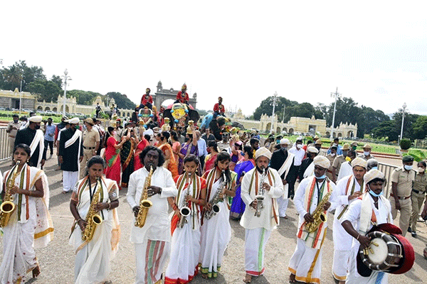 ಅಂಬಾರಿ ಹೊರಲಿರುವ ಅಭಿಮನ್ಯು ನೇತೃತ್ವದಲ್ಲಿ ಎಂಟು ಆನೆಗಳು ಅರಮನೆ ಪ್ರವೇಶ ಮಾಡಿದವು. ಮಂಗಳ ವಾದ್ಯ, ಪೂರ್ಣ ಕುಂಭ ಸ್ವಾಗತದ ಮೂಲಕ ಆನೆಗಳನ್ನು ಬರಮಾಡಿಕೊಳ್ಳಲಾಯಿತು.
