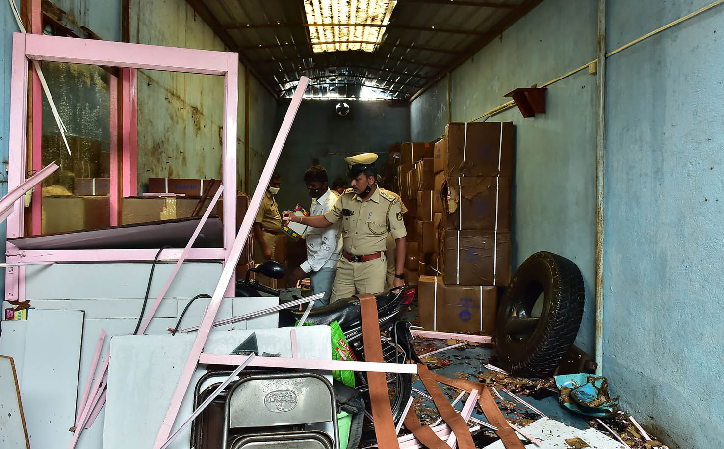 40 ಕೆಜಿ ಸ್ಫೋಟ?: ಗೋದಾಮಿನಲ್ಲಿ 80 ಬಾಕ್ಸ್ ಪಟಾಕಿ ಸಂಗ್ರಹಿಸಲಾಗಿತ್ತು. ಪ್ರತಿಯೊಂದು ಬಾಕ್ಸ್ ತಲಾ ಸುಮಾರು 20 ಕೆ.ಜಿಯಂತೆ ಎರಡು ಬಾಕ್ಸ್ಗಳು ಸ್ಫೋಟಗೊಂಡಿದ್ದು, ಅದರ ಅವಶೇಷಗಳು ಪತ್ತೆಯಾಗಿವೆ ಎಂದು ಹಿರಿಯ ಪೊಲೀಸ್ ಅಧಿಕಾರಿ ತಿಳಿಸಿದರು.