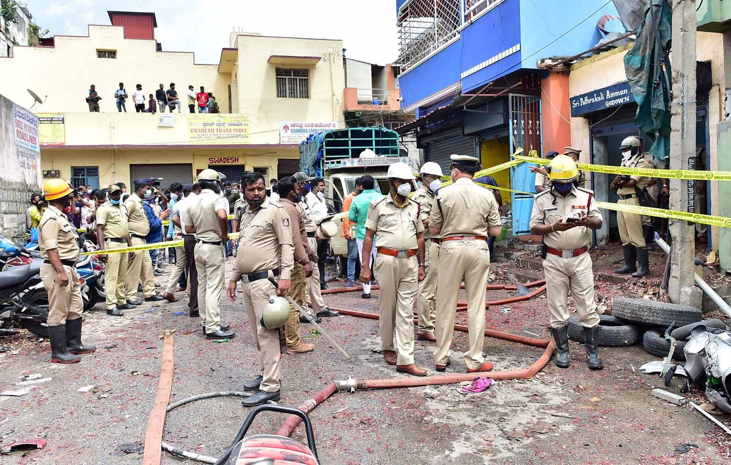 ಇಲ್ಲಿನ ತರಗುಪೇಟೆಯಲ್ಲಿರುವ ಮಹಾಕಾಳಿ ಅಮ್ಮನ್ ಲಾರಿ ಸರ್ವಿಸ್ ಗೋದಾಮಿನಲ್ಲಿ ಈ ಘಟನೆ ಸಂಭವಿಸಿದೆ. ಮೃತರ ಪೈಕಿ ಫಯಾಝ್ ಪಟಾಕಿ ಮಳಿಗೆ ನಡೆಸುತ್ತಿದ್ದರು. ಮನೋಹರ್, ಟಾಟಾಏಸ್ ವಾಹನ ಚಾಲಕ. ಅಸ್ಲಾಂ, ಪಂಕ್ಚರ್ ಅಂಗಡಿ ಮಾಲಕ ಎಂದು ಪೊಲೀಸರು ತಿಳಿಸಿದ್ದಾರೆ.
