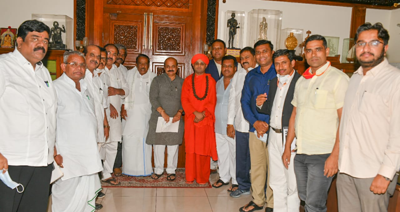 ಗುರುವಾರ ಇಮ್ಮಡಿ ಸಿದ್ದರಾಮೇಶ್ವರ ಸ್ವಾಮಿ ನೇತೃತ್ವದಲ್ಲಿ ಮಾಜಿ ಸಚಿವ ಅರವಿಂದ ಲಿಂಬಾವಳಿ, ಶಾಸಕ ಚಂದ್ರಪ್ಪ, ವೆಂಕಟರಮಣಪ್ಪ, ಗೂಳಿಹಟ್ಟಿ ಶೇಖರ್, ಎಸ್. ರಘು, ಪಿ.ರಾಜೀವ್, ಅವಿನಾಶ್ ಜಾಧವ್, ರಾಮಣ್ಣ ಲಮಾಣಿ, ಸಂಸದ ಉಮೇಶ್ ಜಾಧವ್ ಸೇರಿದಂತೆ ಇನ್ನಿತರರು ನಿಯೋಗದಲ್ಲಿದ್ದರು.