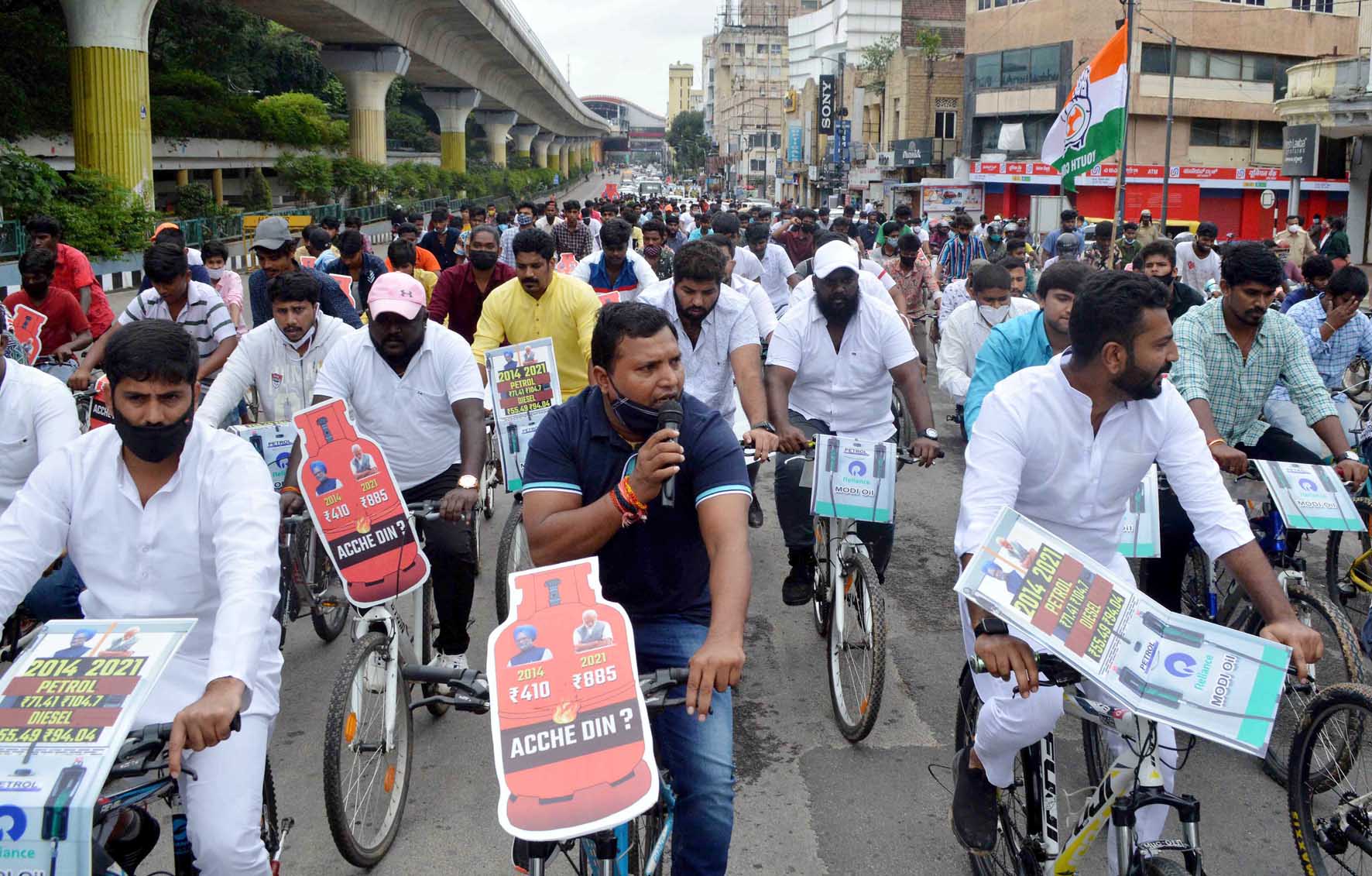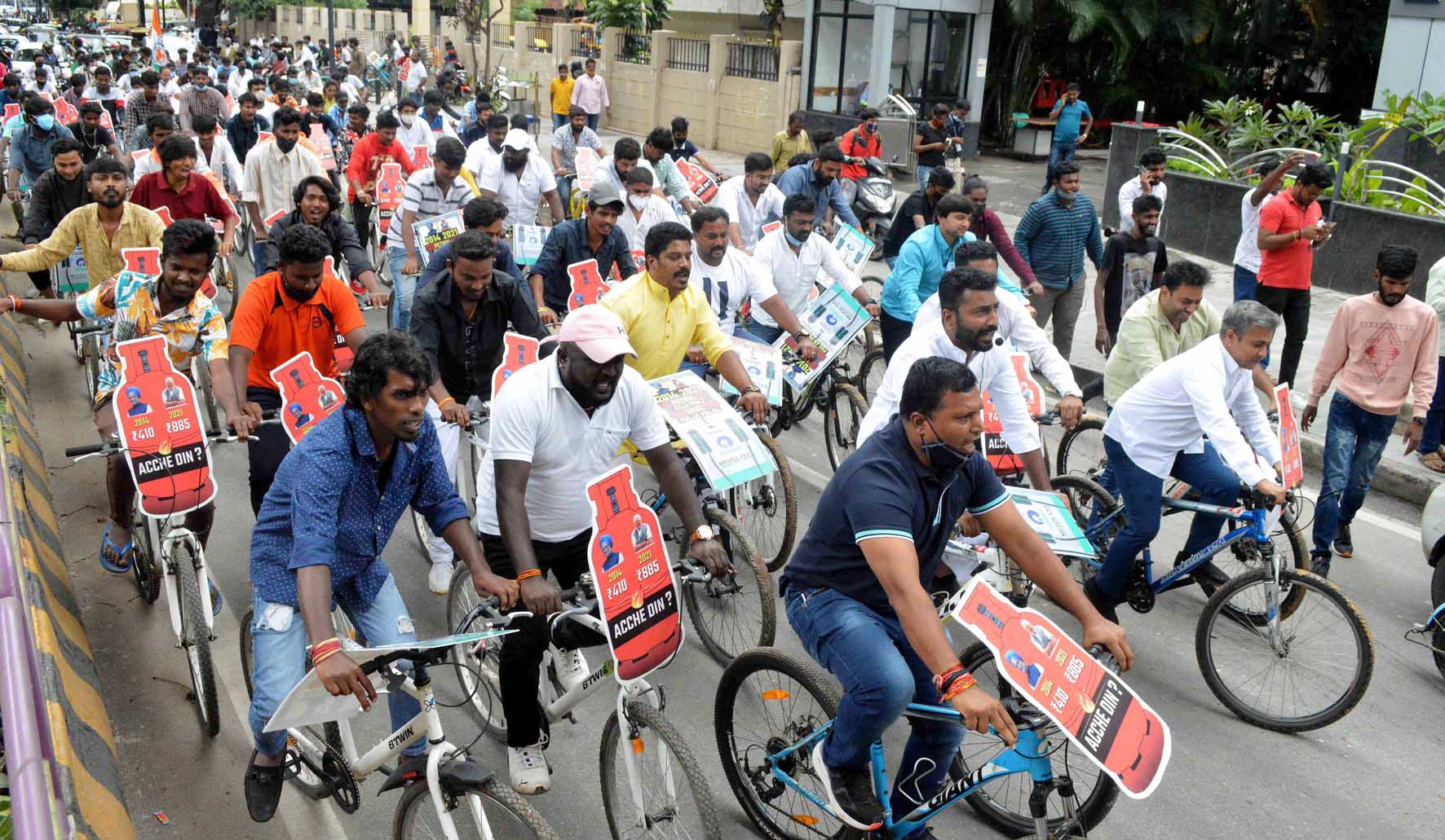 ಬೆಂಗಳೂರು: ಬೆಲೆ ಏರಿಕೆ ವಿರೋಧಿಸಿ ಯುವ ಕಾಂಗ್ರೆಸ್ ನಿಂದ ಸೈಕಲ್ ಜಾಥಾ