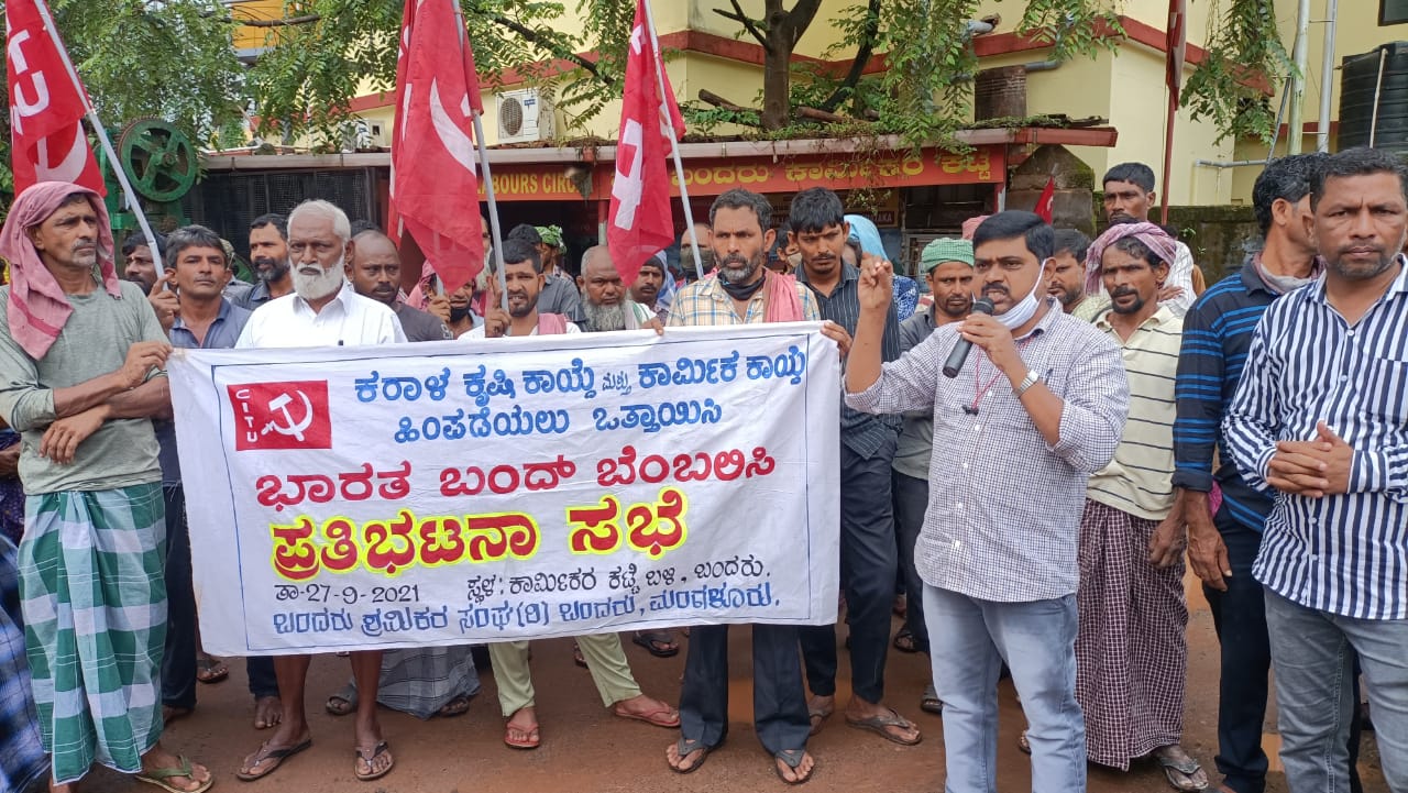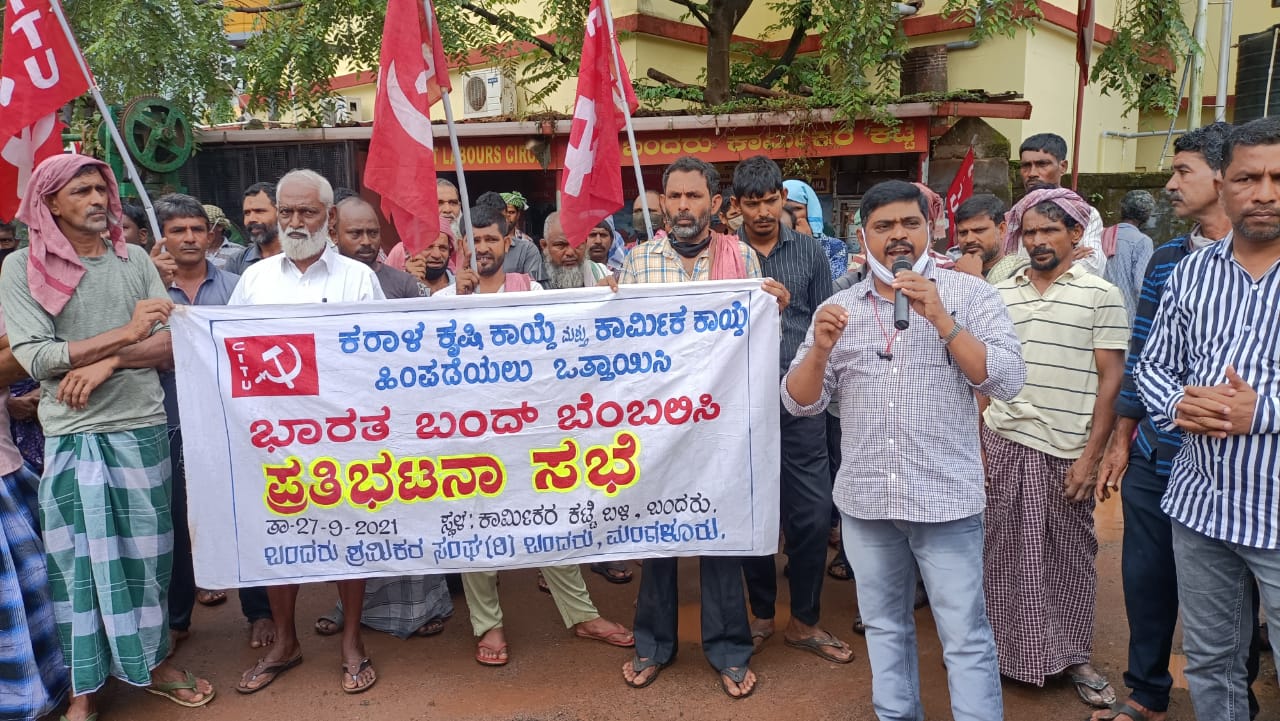 ಮಂಗಳೂರು : ಭಾರತ್ ಬಂದ್ ಬೆಂಬಲಿಸಿ ಬಂದರು ಶ್ರಮಿಕರ ಪ್ರತಿಭಟನೆ