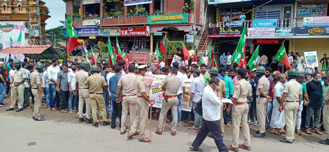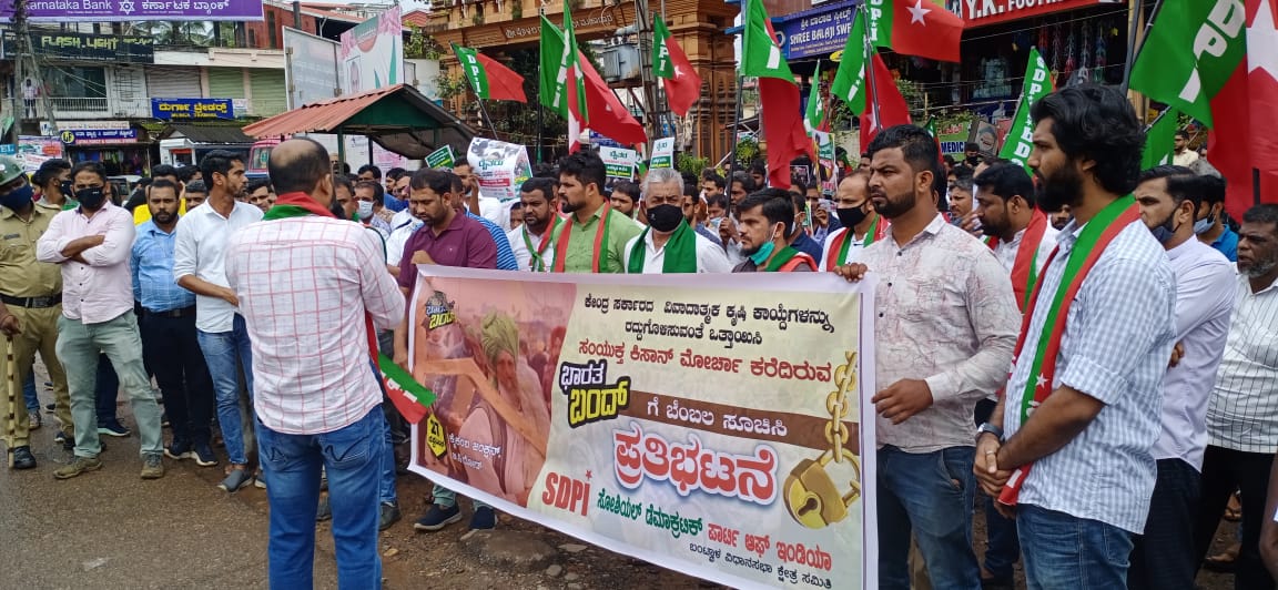 ಕೇಂದ್ರ ಸರಕಾರದ ನೂತನ ಕೃಷಿ ತಿದ್ದುಪಡಿ ಕಾಯ್ದೆಯನ್ನು ವಿರೋಧಿಸಿ ಸಂಯುಕ್ತ ಕಿಸಾನ್ ಮೋರ್ಚಾ ಕರೆ ನೀಡಿರುವ ಭಾರತ್ ಬಂದ್ ಗೆ ಬೆಂಬಲ ಸೂಚಿಸಿ ಎಸ್.ಡಿ.ಪಿ.ಐ. ಬಂಟ್ವಾಳ ವಿಧಾನ ಸಭಾ ಕ್ಷೇತ್ರದ ವತಿಯಿಂದ ಸೋಮವಾರ ಬಿ.ಸಿ.ರೋಡ್ ಕೈಕಂಬದಲ್ಲಿ ನಡೆದ ಪ್ರತಿಭಟನೆಯನ್ನು ಉದ್ದೇಶಿಸಿ ಅವರು ಮಾತನಾಡಿದರು.