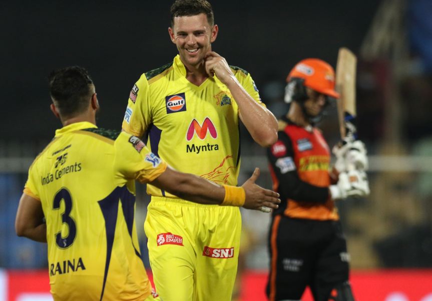 ಚೆನ್ನೈ ಪರವಾಗಿ ವೇಗದ ಬೌಲರ್ ಜೋಶ್ ಹೇಝಲ್ ವುಡ್(3-24)ಯಶಸ್ವಿ ಪ್ರದರ್ಶನ ನೀಡಿದರು. ಡ್ವೆಯ್ನ್ ಬ್ರಾವೊ(2-17)ವುಡ್ ಗೆ ಸಾಥ್ ನೀಡಿದರು.