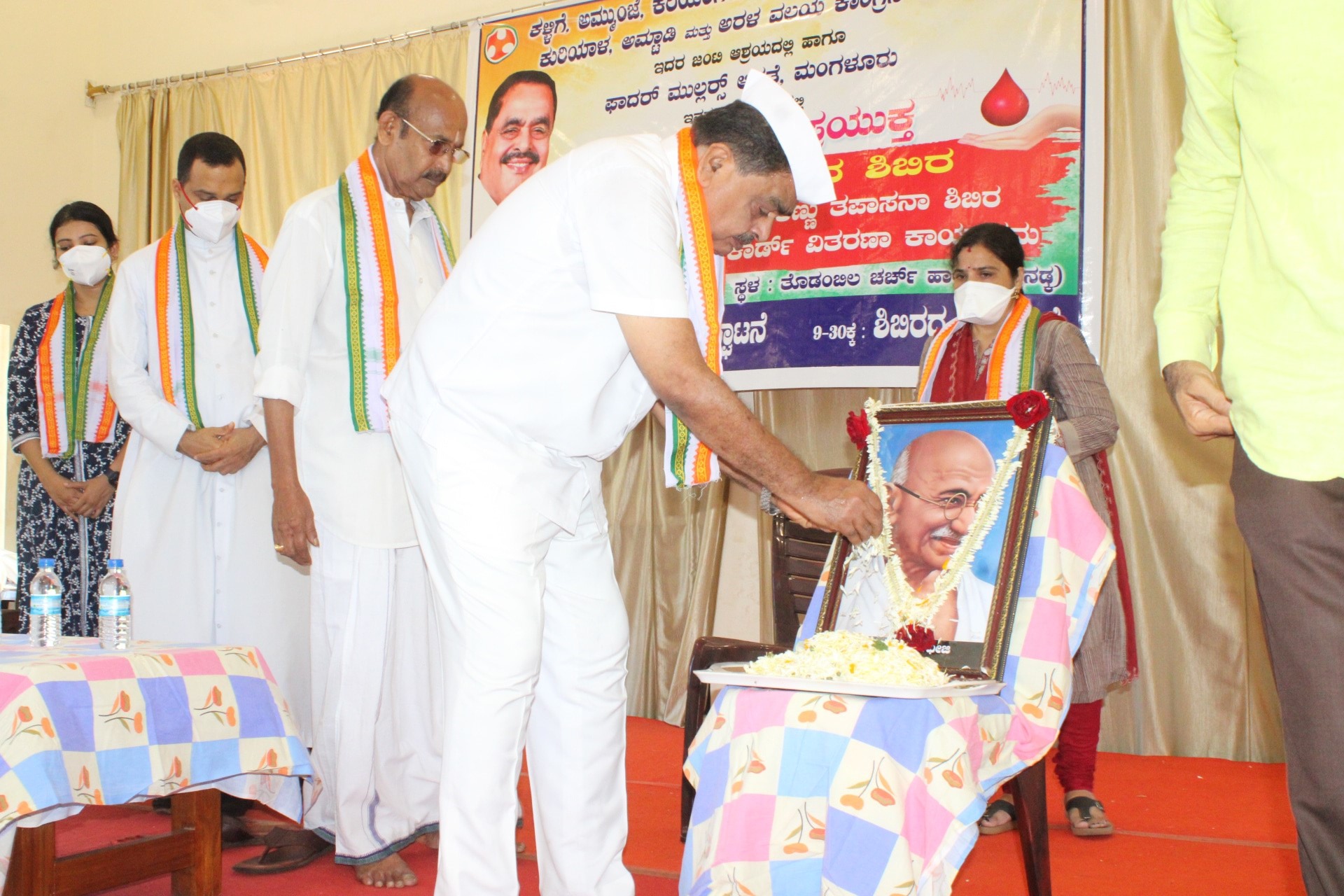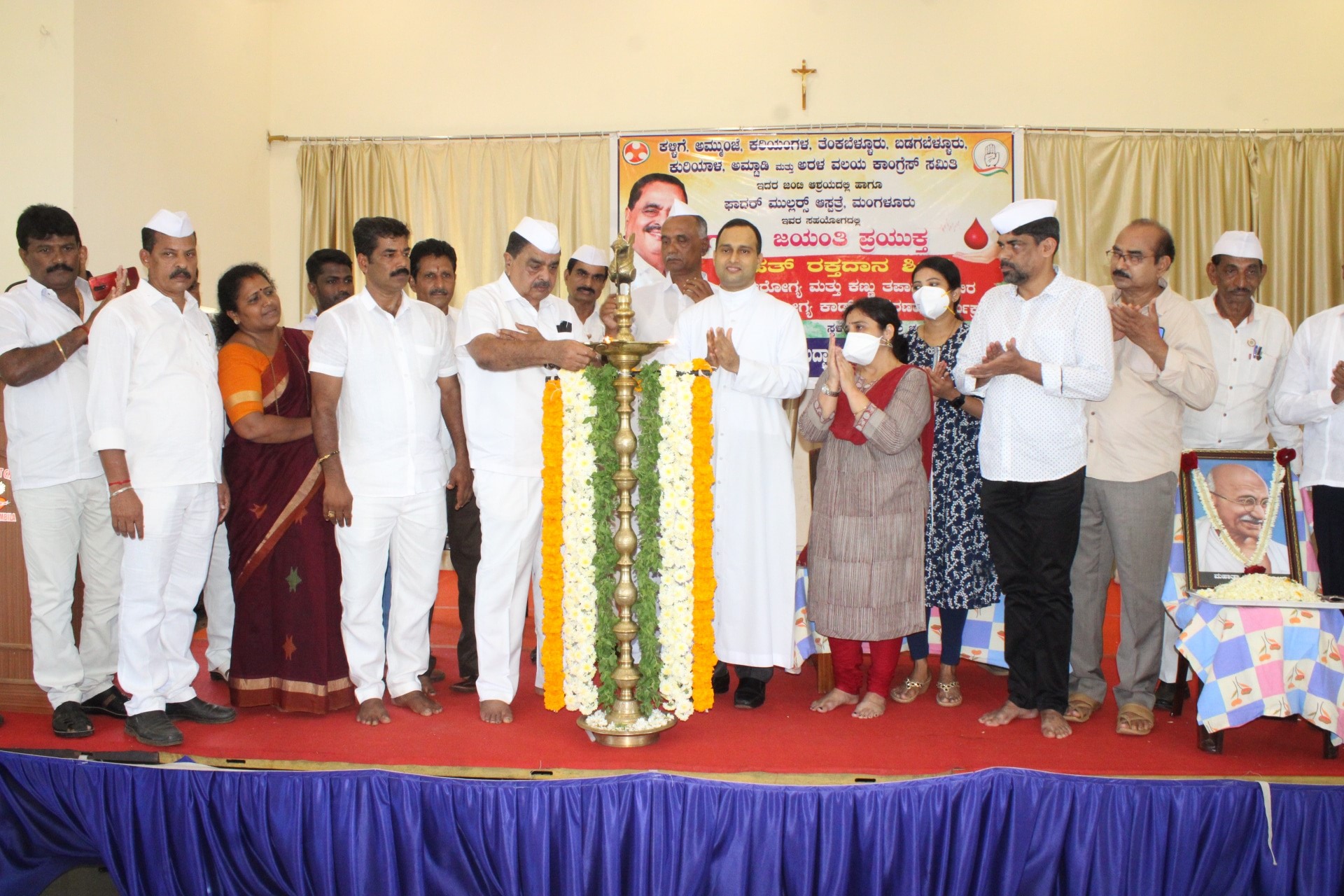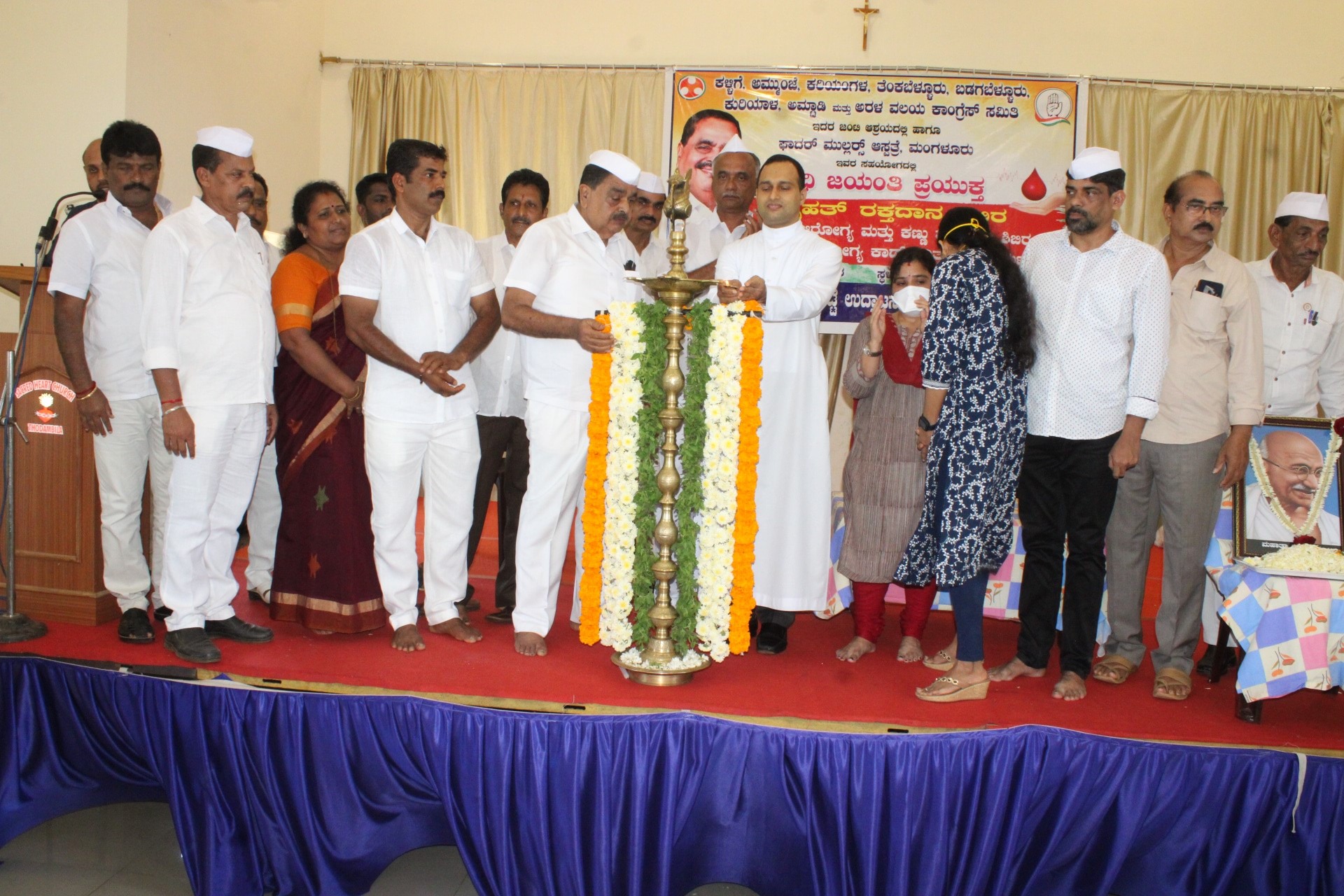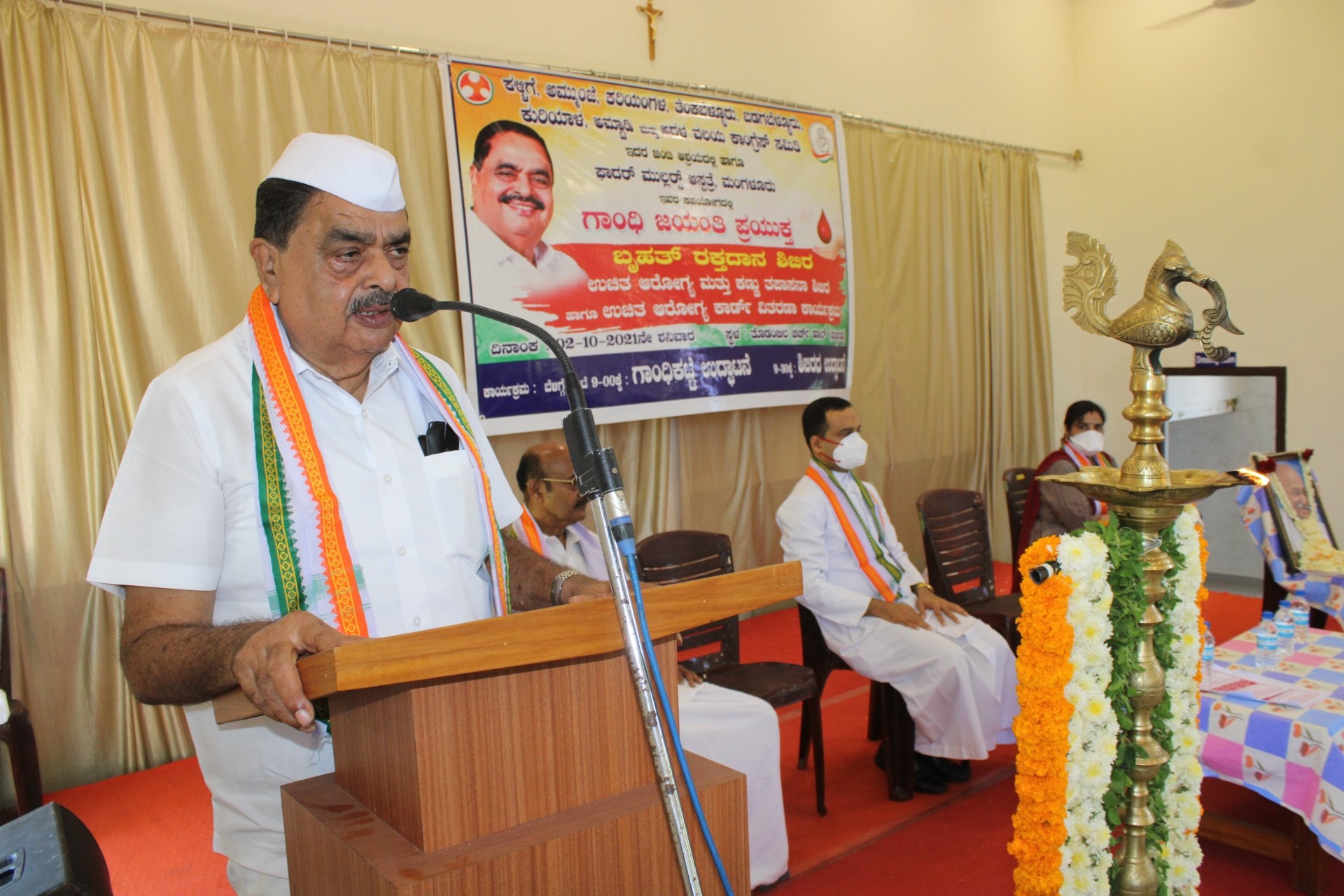ಗಾಂಧಿ ಜಯಂತಿ ಪ್ರಯುಕ್ತ ತಾಲೂಕಿನ ಪಚ್ಚನಡ್ಕ ತೊಡಂಬಿಲ ಚರ್ಚ್ ಹಾಲ್ ನಲ್ಲಿ ಶನಿವಾರ ನಡೆದ ಕಳ್ಳಿಗೆ, ಅಮ್ಮುಂಜೆ, ಕರಿಯಂಗಳ, ತೆಂಕಬೆಳ್ಳೂರು, ಬಡಗಬೆಳ್ಳೂರು, ಕುರಿಯಾಲ, ಅಮ್ಟಾಡಿ ಮತ್ತು ಅರಳ ವಲಯ ಕಾಂಗ್ರೆಸ್ ಸಮಿತಿ ಹಾಗೂ ಫಾದರ್ ಮುಲ್ಲರ್ ಆಸ್ಪತ್ರೆ ಮಂಗಳೂರು ಜಂಟಿ ಆಶ್ರಯದಲ್ಲಿ ರಕ್ತದಾನ ಶಿಬಿರ ಉಚಿತ ಕಣ್ಣಿನ ಮತ್ತು ಆರೋಗ್ಯ ತಪಾಸಣಾ ಶಿಬಿರ, ಉಚಿತ ಆರೋಗ್ಯ ಕಾರ್ಡ್ ವಿತರಣೆ ಕಾರ್ಯಕ್ರಮವನ್ನು ಉದ್ಘಾಟಿಸಿ ಅವರು ಮಾತನಾಡುತ್ತಿದ್ದರು.