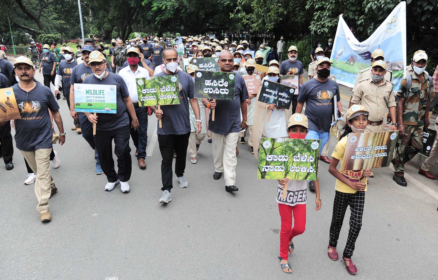 ಶನಿವಾರ ಇಲ್ಲಿನ ಕಬ್ಬನ್ ಪಾರ್ಕ್ನಲ್ಲಿ ಆಯೋಜಿಸಲಾಗಿದ್ದ 67ನೆ ವನ್ಯಜೀವಿ ಸಪ್ತಾಹದ ಅಂಗವಾಗಿ `ವನ್ಯಜೀವಿ ಸಂರಕ್ಷಣೆಗಾಗಿ ನಡಿಗೆ' ಕಾರ್ಯಕ್ರಮದಲ್ಲಿ ಮಾತನಾಡಿದ ಅವರು, `ವನ್ಯಜೀವಿ ಹಾಗೂ ಕಾಡಿನ ರಕ್ಷಣೆಯ ಬಗ್ಗೆ ನಮ್ಮಲ್ಲಿ ಇನ್ನೂ ಹೆಚ್ಚಿನ ಜಾಗೃತಿ ಮೂಡಬೇಕಿದೆ. ಕಾಡು ಉಳಿದರೆ ಮಾತ್ರ ನಾವು ನೆಮ್ಮದಿಯಿಂದ ಇರುವುದಕ್ಕೆ ಸಾಧ್ಯ. ಕರ್ನಾಟಕ ಗಂಧದ ನಾಡು ಎಂಬ ಕೀರ್ತಿ ಹೊಂದಿದೆ. ಇದನ್ನು ಕಾಪಾಡಿಕೊಂಡು ಹೋಗುವ ಜವಾಬ್ದಾರಿ ನಮ್ಮೆಲ್ಲರ ಮೇಲಿದೆ. ಅರಣ್ಯ ಇಲಾಖೆಯು ಕರ್ನಾಟಕವನ್ನು ಬರುವ ದಿನಗಳಲ್ಲಿ ದೇಶದಲ್ಲಿಯೇ ಅತಿ ಹೆಚ್ಚು ಅರಣ್ಯ ಪ್ರದೇಶ ಹೊಂದಿರುವ ರಾಜ್ಯವನ್ನಾಗಿ ಮಾಡುವ ಗುರಿ ಹೊಂದಿದೆ' ಎಂದು ಹೇಳಿದರು.