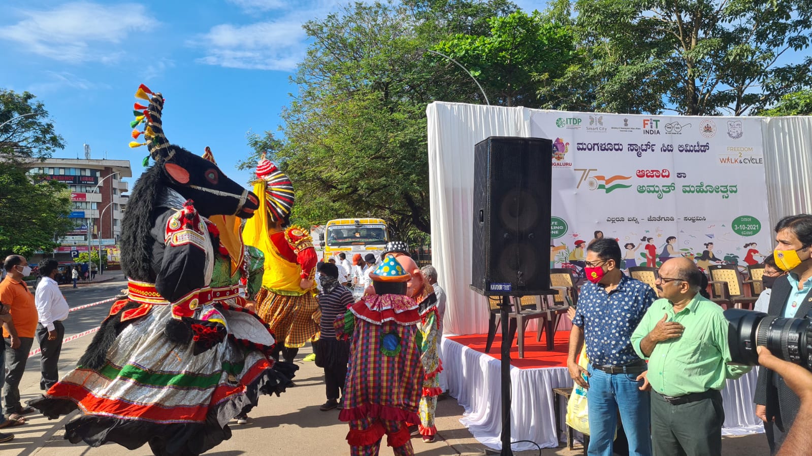 ಮಂಗಳೂರು, ಅ.3: ಸ್ವಾತಂತ್ರ್ಯೋತ್ಸವದ ಅಮೃತ ಮಹೋತ್ಸವದ ಹಿನ್ನೆಲೆಯಲ್ಲಿ ಮಂಗಳೂರು ಸ್ಮಾರ್ಟ್ಸಿಟಿ ವತಿಯಿಂದ ವಿವಿಧ ಸಂಘಟನೆಗಳ ಸಹಯೋಗದಲ್ಲಿ ‘ಆಜಾದಿ ಕಾ ಅಮೃತ ಮಹೋತ್ಸವ’ ಆಚರಣೆ ರವಿವಾರ ನಗರದಲ್ಲಿ ಜರುಗಿತು. ಆಚರಣೆಯ ಪ್ರಯುಕ್ತ ರ್ಯಾಲಿ, ವಾಕಥಾನ್, ಚಿತ್ರಕಲಾ ಪ್ರದರ್ಶನ ಸಹಿತ ವಿವಿಧ ಕಾರ್ಯಕ್ರಮ ನಡೆಯಿತು.