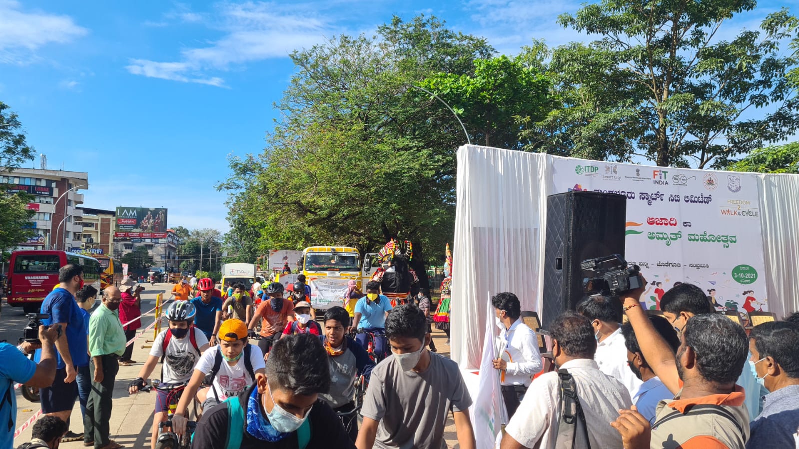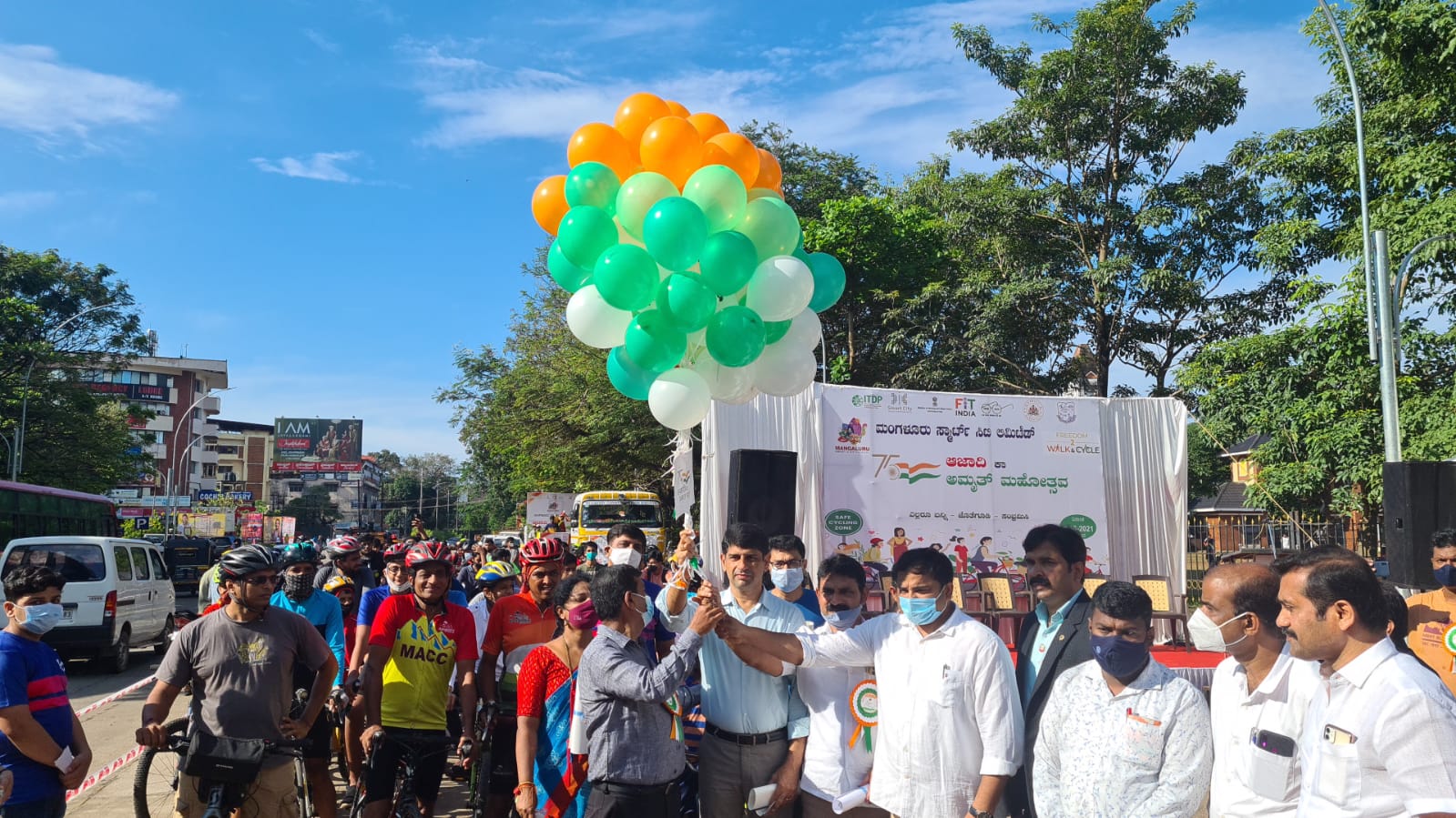 *ಎ.ಬಿ. ಶೆಟ್ಟಿ ವೃತ್ತದ ಬಳಿಯಿಂದ ಆರಂಭವಾದ ರ್ಯಾಲಿಯು ಕ್ಲಾಕ್ ಟವರ್, ಹಂಪನಕಟ್ಟೆ ಸಿಗ್ನಲ್, ಅಂಬೇಡ್ಕರ್ ವೃತ್ತ, ಬಂಟ್ಸ್ ಹಾಸ್ಟೆಲ್, ಪಿವಿಎಸ್, ಎಂಜಿ ರಸ್ತೆಯಲ್ಲಿ ಬಳ್ಳಾಲ್ಬಾಗ್, ಲಾಲ್ಬಾಗ್, ಲೇಡಿಹಿಲ್ ವೃತ್ತದ ಮೂಲಕ ಮಂಗಳಾ ಕ್ರೀಡಾಂಗಣದಲ್ಲಿ ಸಮಾರೋಪಗೊಂಡಿತು.ಸಮಾರೋಪ ಕಾರ್ಯಕ್ರಮವನ್ನು ಶಾಸಕ ಡಿ.ವೇದವ್ಯಾಸ್ ಕಾಮತ್ ಉದ್ಘಾಟಿಸಿದರು. ಬಳಿಕ ಮಾತನಡಿದ ಅವರು ದೇಶದ ಹಲವು ಸ್ಮಾರ್ಟ್ ಸಿಟಿಗಳಲ್ಲಿ ಆಜಾದಿ ಕಾ ಅಮೃತ ಮಹೋತ್ಸವ ಆಚರಿಸಲಾಗುತ್ತಿದೆ. ಮಂಗಳೂರಿನಲ್ಲೂ ಸಾರ್ವಜನಿಕರನ್ನು ಒಳಗೊಂಡಂತೆ ಕಾರ್ಯಕ್ರಮ ಆಯೋಜಿಸಲಾಗಿದೆ. ಸ್ವಾತಂತ್ರ್ಯಕ್ಕಾಗಿ ಹೋರಾಟ ಮಾಡಿ ಹುತಾತ್ಮರಾದ ಮಹನೀಯರ ಕುರಿತು ಮಾಹಿತಿ ಒದಗಿಸುವುದು ಕಾರ್ಯಕ್ರಮದ ಉದ್ದೇಶವಾಗಿದೆ ಎಂದರು.