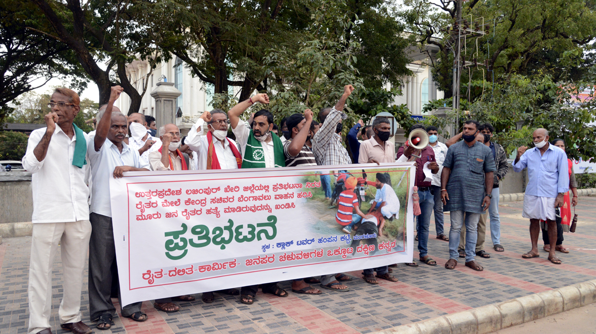 ಮಂಗಳೂರು: ಉತ್ತರಪ್ರದೇಶ ರೈತರ ಹತ್ಯೆ ಖಂಡಿಸಿ ಪ್ರತಿಭಟನಾ ಪ್ರದರ್ಶನ