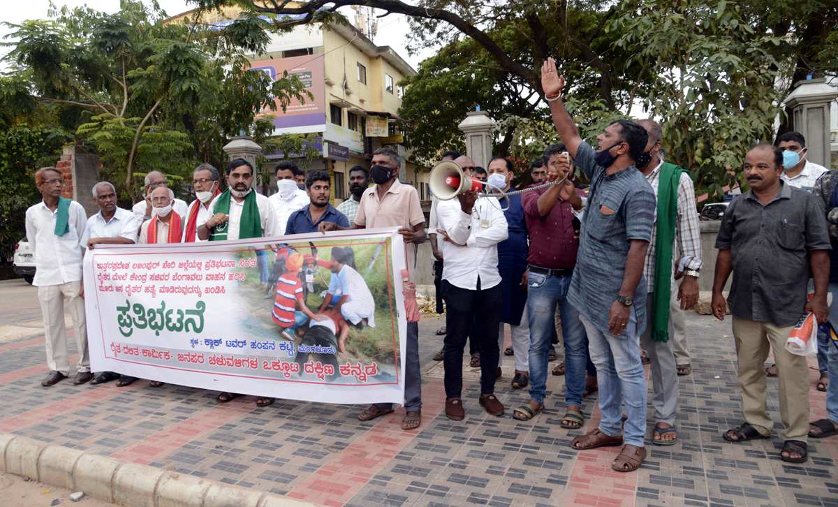 ಪ್ರತಿಭಟನೆಯನ್ನು ಉದ್ದೇಶಿಸಿ ರೈತ ಸಂಘಟನೆಗಳ ಮುಖಂಡರಾದ ಕ್ರಷ್ಣಪ್ಪ ಸಾಲ್ಯಾನ್, ಓಸ್ವಾಲ್ಡ್ ಪ್ರಕಾಶ್ ಫೆರ್ನಾಂಡೀಸ್, ರೆನ್ನಿ ಡಿಸೋಜ, ಡಿವೈಎಫ್ಐ ನಾಯಕರಾದ ಸಂತೋಷ್ ಬಜಾಲ್ ಮೊದಲಾದವರು ಮಾತನಾಡಿದರು.