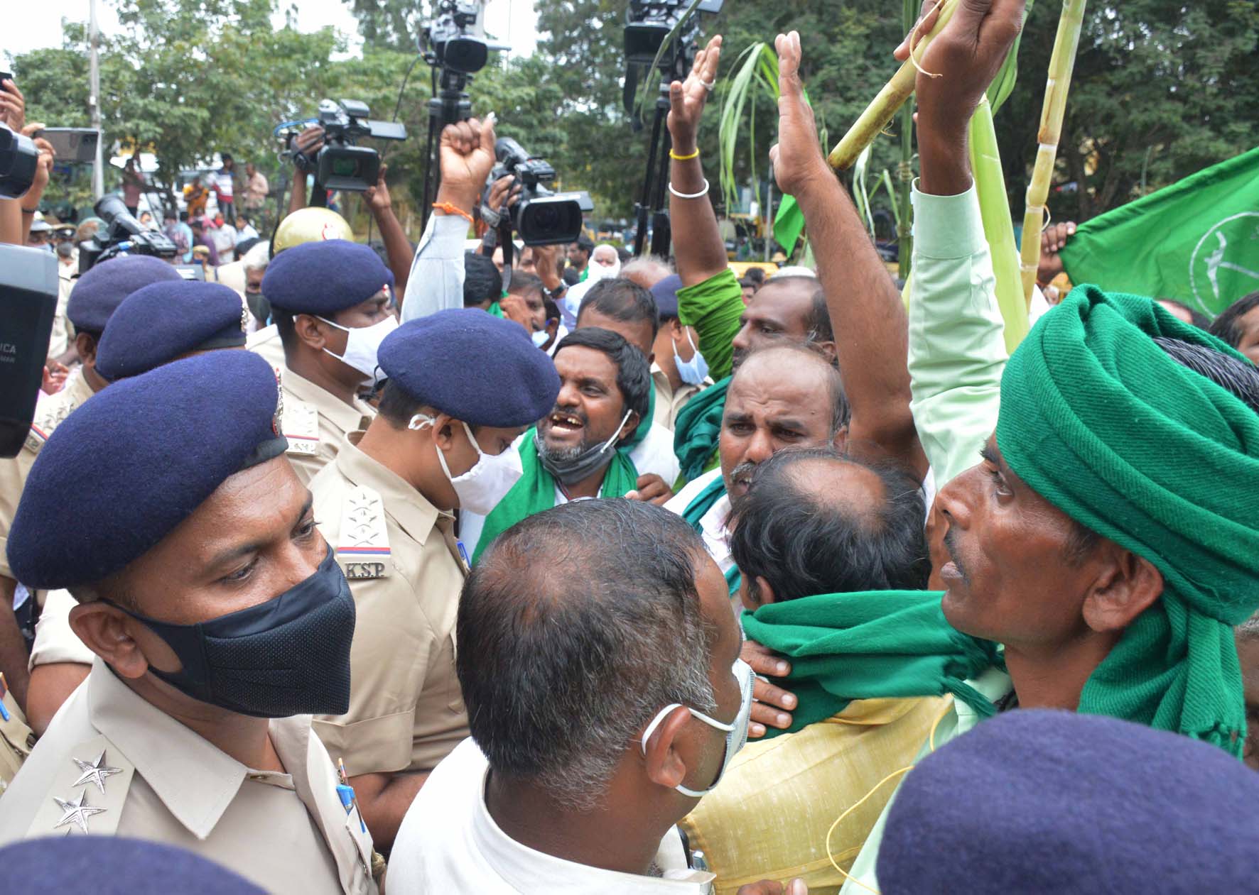 ವಿಧಾನಸೌಧ ಮುತ್ತಿಗೆ ಹಾಕಲು ಯತ್ನಿಸಿದ ಪ್ರತಿಭಟನಾಕಾರರನ್ನು ಫ್ರೀಡಂಪಾರ್ಕ್ ಬಳಿ ಪೊಲೀಸರು ತಡೆದರು.ಜತೆಗೆ, ಬಿಗಿ ಪೊಲೀಸ್ ಬಂದೋಬಸ್ತ್ ಕೈಗೊಳ್ಳಲಾಗಿತ್ತು.