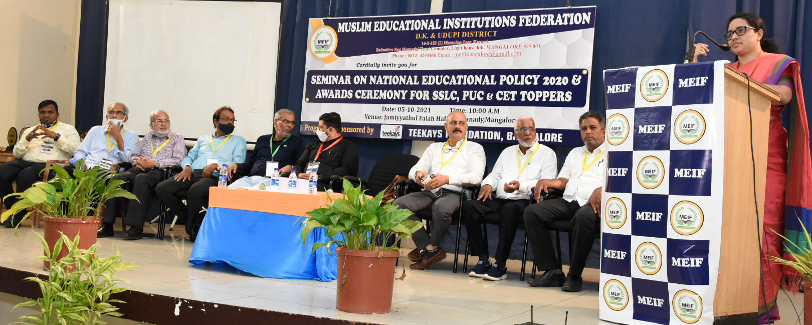 ವೇದಿಕೆಯಲ್ಲಿ ಎಂಇಐಎಫ್ ಪ್ರಧಾನ ಕಾರ್ಯದರ್ಶಿ ಬಿ.ಎ.ನಝೀರ್, ಜಮೀಯ್ಯತುಲ್ ಫಲಾಹ್ ಅಧ್ಯಕ್ಷ ಶಬೀ ಅಹ್ಮದ್ ಖಾಝಿ, ಎಂಇಐಎಫ್ ಉಪಾಧ್ಯಕ್ಷರಾದ ಅಬ್ದುಲ್ ರಹಿಮಾನ್ ಮಣಿಪಾಲ, ಕೆ.ಎಂ. ಮುಸ್ತಫಾ ಸುಳ್ಯ, ಕೋಶಾಧಿಕಾರಿ ಅಬ್ದುಲ್ ರಹ್ಮಾನ್, ಕಾರ್ಯದರ್ಶಿಗಳಾದ ಬಿ. ಮಯ್ಯದ್ದಿ, ಪಿ.ಎ. ಇಲ್ಯಾಸ್ ಉಪಸ್ಥಿತರಿದ್ದರು.