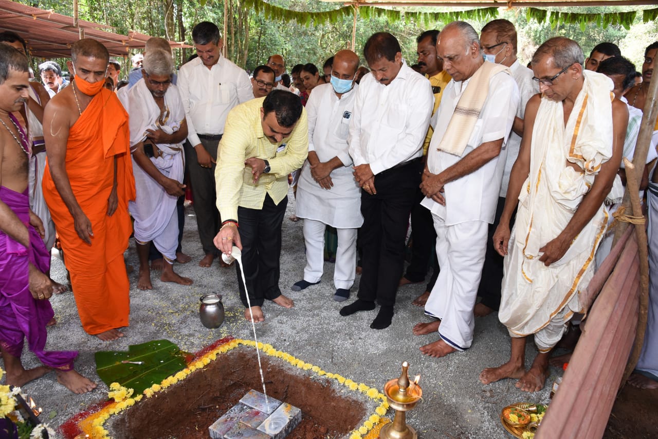 ಹೆಬ್ರಿ, ಅ.8: ಈಗಾಗಲೇ ಜಿಲ್ಲೆಯಲ್ಲಿ ಮೂರು ಗೋಶಾಲೆಗಳನ್ನು ನಡೆಸುತ್ತಿರುವ ಪೇಜಾವರ ಮಠದ ಶ್ರೀವಿಶ್ವಪ್ರಸ್ನ ತೀರ್ಥರ ನೇತೃತ್ವದಲ್ಲಿ ಶ್ರೀವಿಶ್ವೇಶಕೃಷ್ಣ ಗೋಸೇವಾ ಟ್ರಸ್ಟ್ ವತಿಯಿಂದ ಹೆಬ್ರಿಯ ಗಿಲ್ಲಾಳಿಯ ಏಳು ಎಕರೆ ಪ್ರದೇಶದಲ್ಲಿ ಸ್ಥಾಪಿಸಲಾಗುವ ನೂತನ ಗೋಶಾಲೆಗೆ ರಾಜ್ಯ ಇಂಧನ, ಕನ್ನಡ ಮತ್ತು ಸಂಸ್ಕೃತಿ ಇಲಾಖೆ ಸಚಿವ ವಿ.ಸುನೀಲ್ ಕುಮಾರ್ ಉಪಸ್ಥಿತಿಯಲ್ಲಿ ಇಂದು ಶಿಲಾನ್ಯಾಸ ನೆರವೇರಿತು.