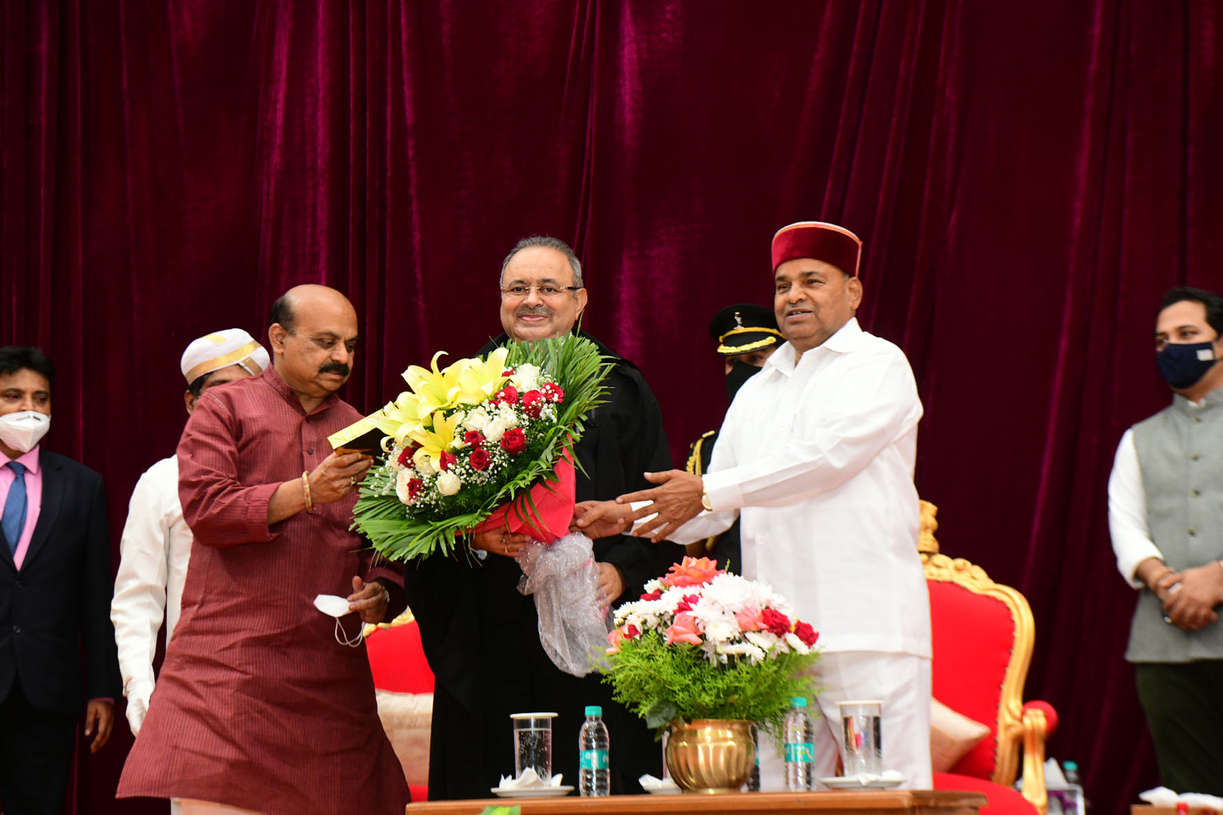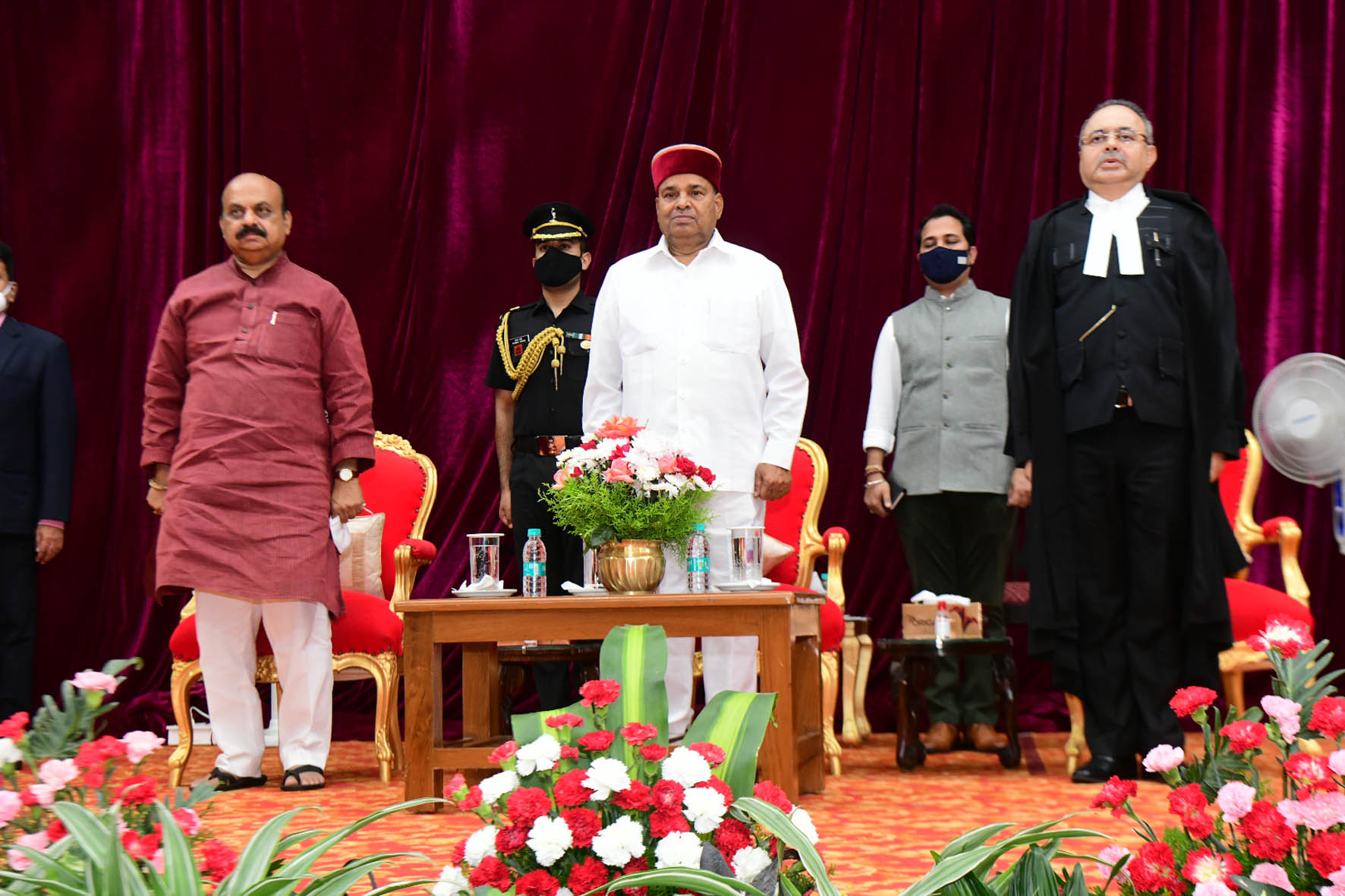 ರಾಜಭವನದ ಗಾಜಿನ ಮನೆಯಲ್ಲಿ ನಡೆದ ಸರಳ ಸಮಾರಂಭದಲ್ಲಿ ರಾಜ್ಯಪಾಲ ಥಾವರಚಂದ್ ಗೆಹ್ಲೋಟ್ ಅವರು ಪ್ರಮಾಣ ವಚನ ಬೋಧಿಸಿದರು.