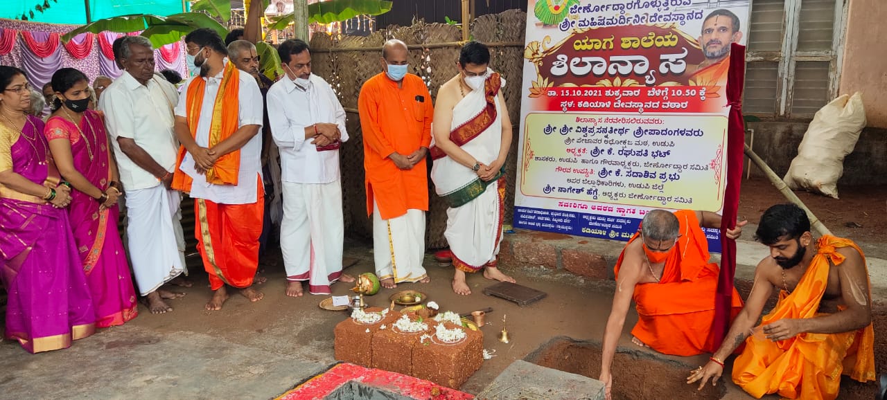 ಉಡುಪಿ, ಅ.15: ಜೀರ್ಣೋದ್ದಾರಗೊಳ್ಳುತ್ತಿರುವ ಕಡಿಯಾಳಿಯ ಶ್ರೀ ಮಹಿಷ ಮರ್ದಿನಿ ದೇವಸ್ಥಾನದ ಯಾಗ ಶಾಲೆಗೆ ಶಿಲಾನ್ಯಾಸ ಕಾರ್ಯಕ್ರಮ ಇಂದು ದೇವಸ್ಥಾನದ ವಠಾರದಲ್ಲಿ ನೆರವೇರಿತು.