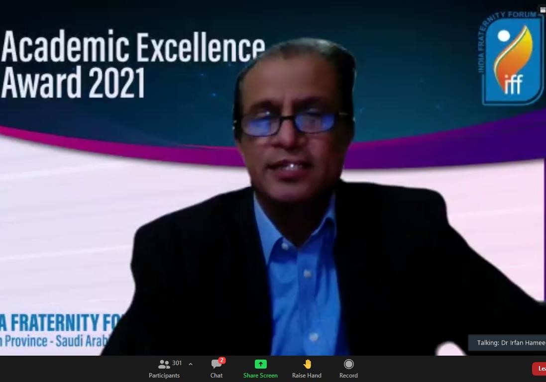 ದಮಾಮ್ : ಇಂಡಿಯಾ ಫ್ರೆಟರ್ನಿಟಿ ಫೋರಂ ವತಿಯಿಂದ 'ಅಕಾಡಮಿಕ್ ಎಕ್ಸಲೆನ್ಸ್ ಅವಾರ್ಡ್ - 2021' ವೆಬಿನಾರ್ ಕಾರ್ಯಕ್ರಮವನ್ನು ಇತ್ತೀಚೆಗೆ ಆಯೋಜಿಸಲಾಗಿತ್ತು. 2021-22ನೆ ಸಾಲಿನಲ್ಲಿ ಪೂರ್ವ ಪ್ರಾಂತ್ಯದಾದ್ಯಂತ ಶಾಲೆಗಳಲ್ಲಿ ಉತ್ತಮ ಫಲಿತಾಂಶ ಪಡೆದ ವಿದ್ಯಾರ್ಥಿಗಳನ್ನು ಗೌರವಿಸುವುದಕ್ಕಾಗಿ ಈ ಕಾರ್ಯಕ್ರಮವನ್ನು ಆಯೋಜಿಸಲಾಗಿತ್ತು.