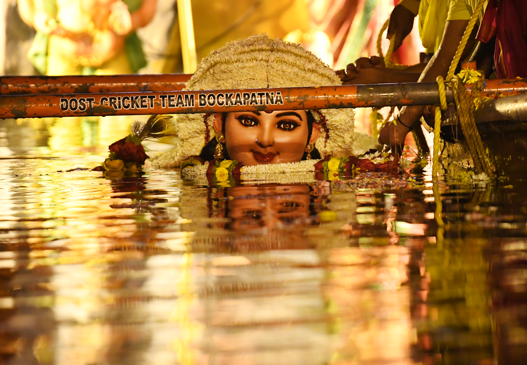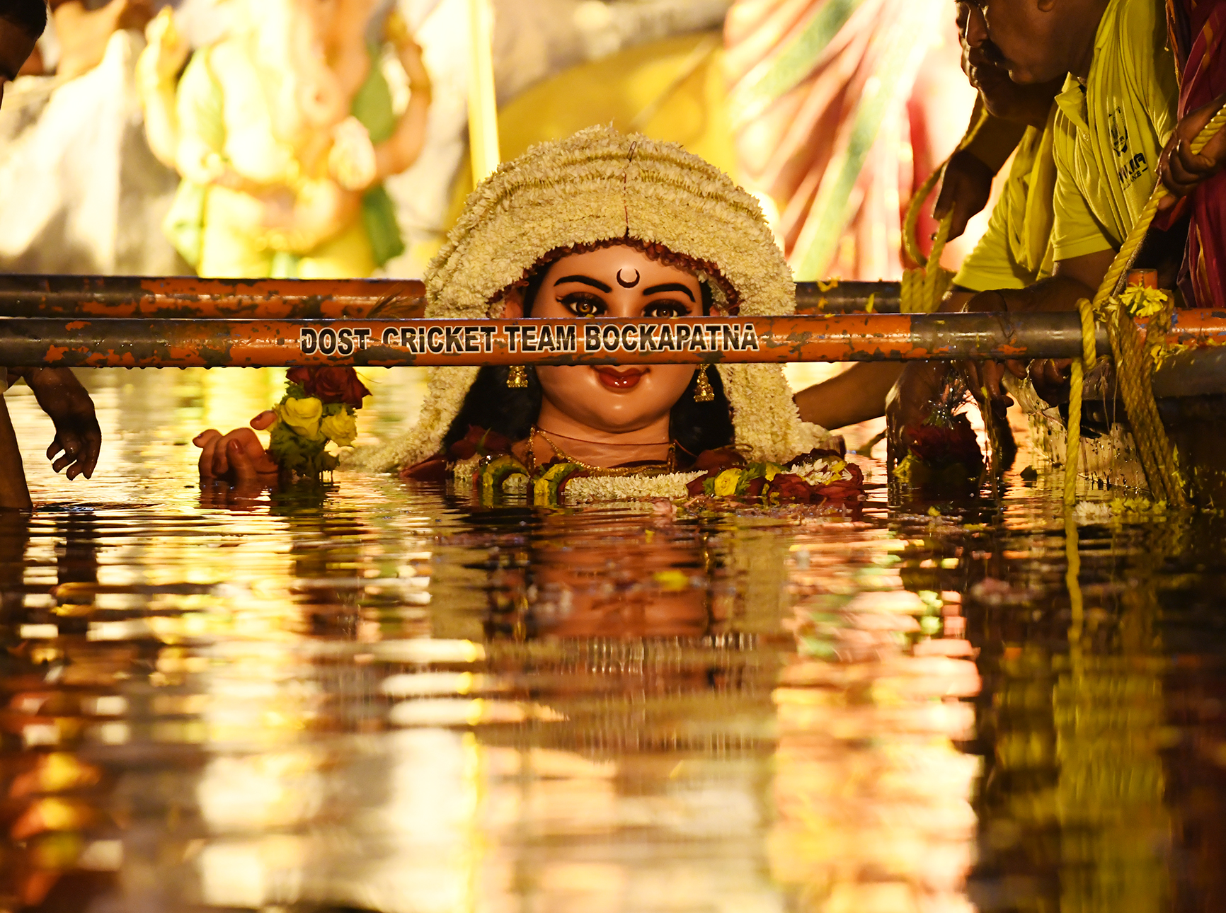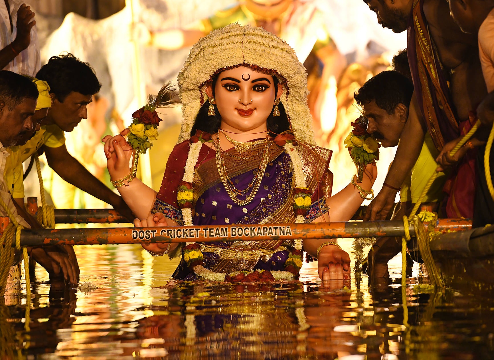 ಮಂಗಳೂರು, ಅ.16: ಕುದ್ರೋಳಿ ಶ್ರೀಗೋಕರ್ಣ ಕ್ಷೇತ್ರದಲ್ಲಿ ನವರಾತ್ರಿಯ ಸಂದರ್ಭದಲ್ಲಿ ಪ್ರತಿಷ್ಠಾಪಿಸಿ ಪೂಜಿಸಲ್ಪಟ್ಟ ನವದುರ್ಗೆ, ಶಾರದಾ ಮೂರ್ತಿಯ ಜಲಸ್ತಂಭದೊಂದಿಗೆ ಆರಂಭಗೊಂಡ ಉತ್ಸವದ ಸಮಾಪನ ಕಾರ್ಯ ದೇವಳದ ಪುಷ್ಕರಣಿಯಲ್ಲಿ ಶುಕ್ರವಾರ ಸಂಜೆಯಿಂದ ಶನಿವಾರ ಮುಂಜಾನೆ ಸುಮಾರು 3:30 ರವರೆಗೂ ಉತ್ಸಾಹಿ ಭಕ್ತರ ಸಮ್ಮುಖದಲ್ಲಿ ನಡೆಯಿತು.