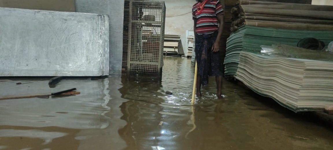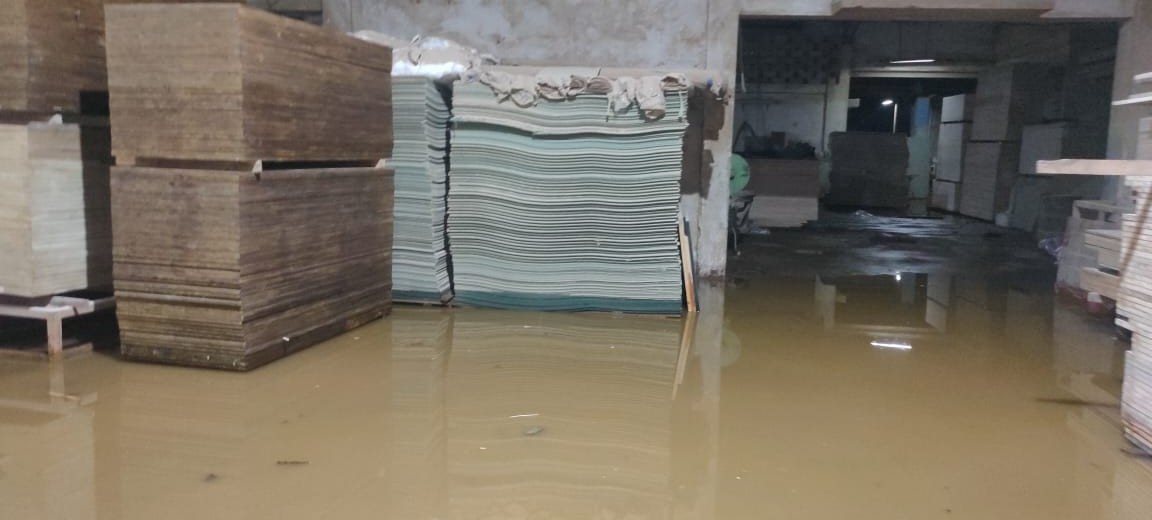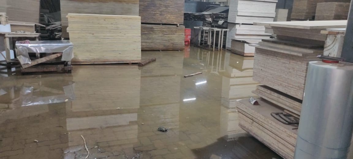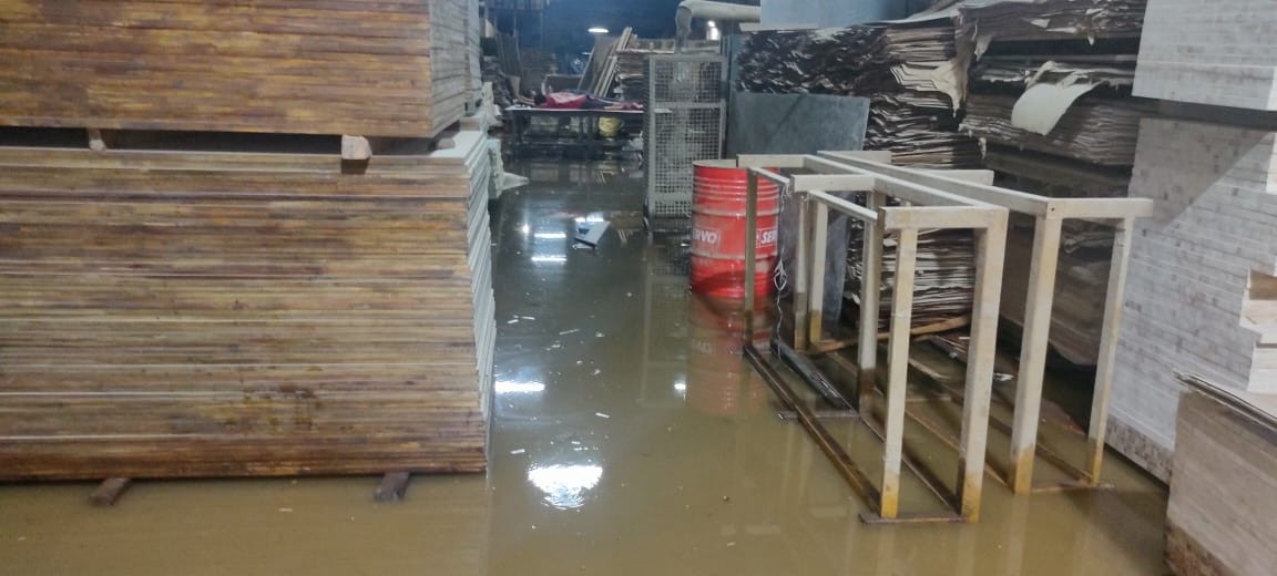 ಬೈಕಂಪಾಡಿಯ ಕೈಗಾರಿಕಾ ಪ್ರದೇಶ ವಲಯದಲ್ಲಿನ "ಮಾ ಬೋರ್ಡ್ಸ್ ಪ್ರಾಡಕ್ಟ್" ಕಂಪೆನಿಯ ಒಳಗೆ ಭಾರೀ ಮಳೆ ನೀರು ನಿಂತಿಕೊಂಡಿದ್ದು, ಉಪಕರಣ ಸಹಿತ ಇತರ ವಸ್ತುಗಳಿಗೆ ಹಾನಿಯಾಗಿದೆ ಎಂದು ತಿಳಿದುಬಂದಿದೆ.