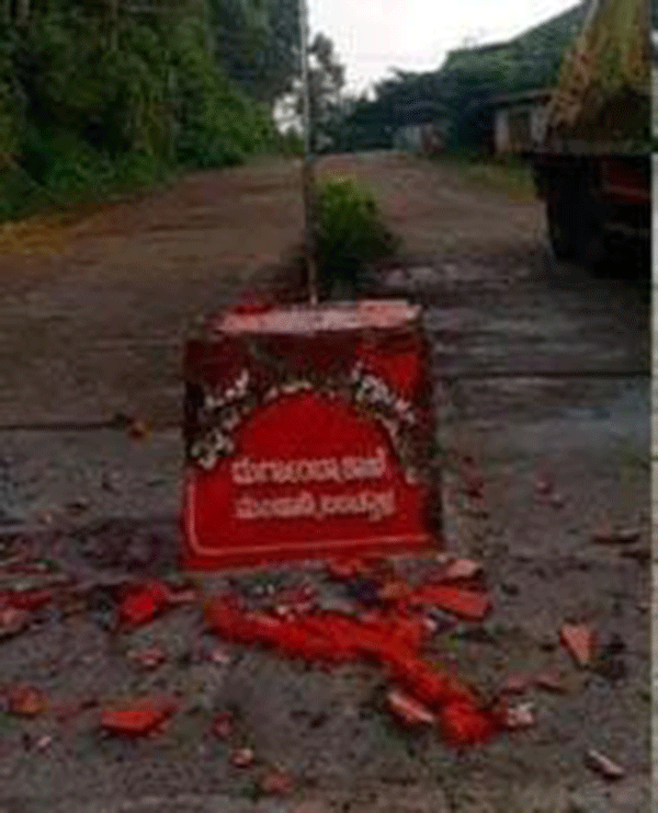 ಬಂಟ್ವಾಳ, ಅ.19: ಇಲ್ಲಿನ ಮಂಡಾಡಿ ಬಳಿ ವಿಹಿಂಪ - ಬಜರಂಗ ದಳ ಮಂಡಾಡಿ ಶಾಖೆಯ ವತಿಯಿಂದ ನಿರ್ಮಿಸಲಾಗಿದ್ದ ಕಟ್ಟೆಯೊಂದಕ್ಕೆ ಯಾರೋ ಕಿಡಿಗೇಡಿಗಳು ಹಾನಿ ಮಾಡಿದ ಘಟನೆ ಮಂಗಳವಾರ ಬೆಳಗ್ಗೆ ಬೆಳಕಿಗೆ ಬಂದಿದೆ.