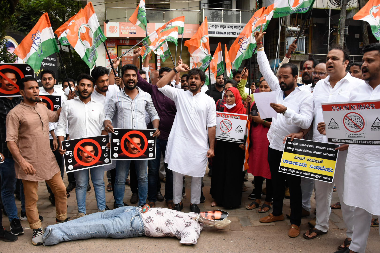 ಮಂಗಳೂರು; ರಾಹುಲ್ ಗಾಂಧಿ ಬಗ್ಗೆ ಅವಹೇಳನಕಾರಿ ಹೇಳಿಕೆ ನೀಡಿದ ಬಿಜೆಪಿ ರಾಜ್ಯಾಧ್ಯಕ್ಷ ವಿರುದ್ಧ ಕಾಂಗ್ರೆಸ್ ಪ್ರತಿಭಟನೆ