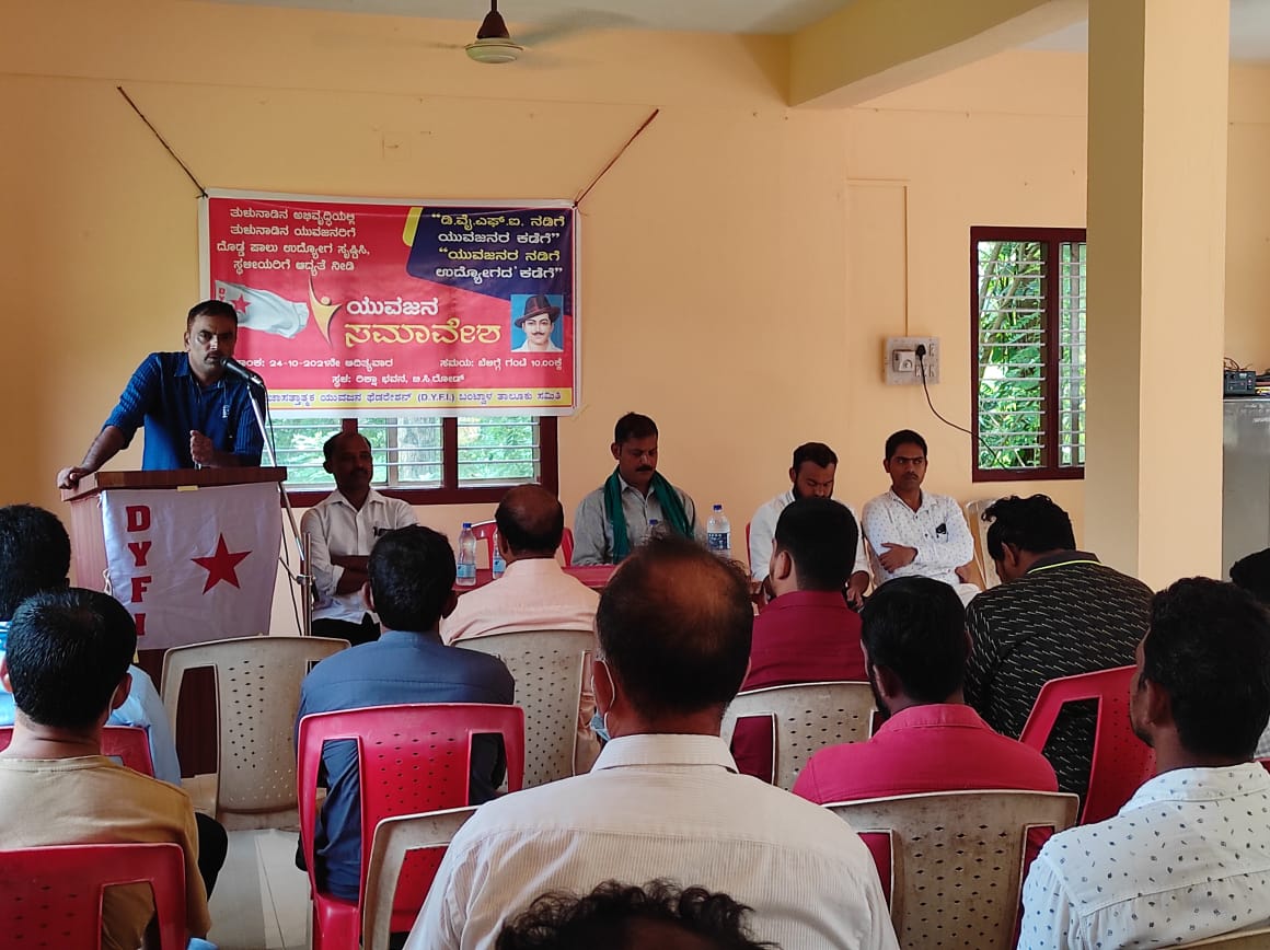 ಡಿ.ವೈ.ಎಫ್.ಐ ಜಿಲ್ಲಾ ಕಾರ್ಯದರ್ಶಿ ಸಂತೋಷ್ ಬಜಾಲ್ ಮಾತನಾಡಿ ನಿರುದ್ಯೋಗ ದ ಪ್ರಮಾಣ ಅತಿಯಾಗಿ ಯುವ ಜನತೆ ಆತ್ಮಹತ್ಯೆ ಮಾಡಿಕೊಳ್ಳುತ್ತಿದ್ದು ಸರಕಾರದ ಹಲವು ಇಲಾಖೆಗಳಲ್ಲಿ ಹುದ್ದೆಗಳು ಖಾಲಿ ಇದ್ದು ಇದನ್ನು ಭರ್ತಿ ಮಾಡಲು ಸರಕಾರ ಮುಂದಾಗುತ್ತಿಲ್ಲ, ನಿರುದ್ಯೋಗಿ ಯುವಜನತೆಯನ್ನು ರಾಜಕೀಯ ಲಾಭಕ್ಕಾಗಿ ದಾರಿ ತಪ್ಪಿಸಲಾಗುತ್ತಿದೆ ಎಂದು ಆರೋಪಿಸಿದರು.