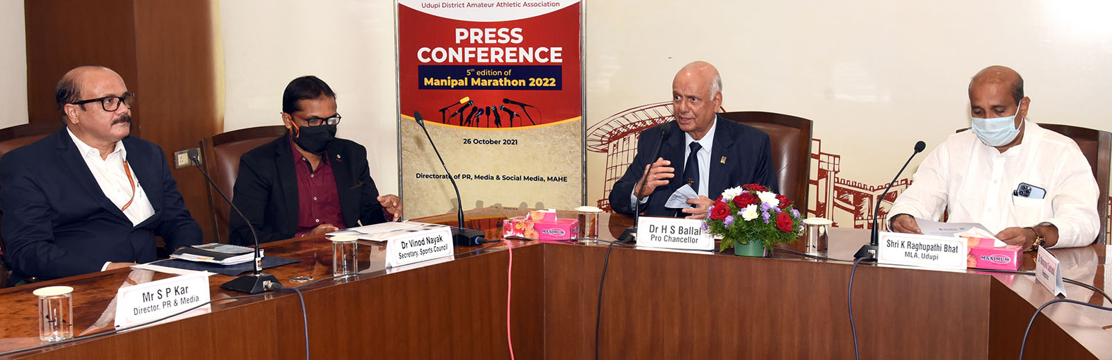 ಉಡುಪಿ, ಅ.26: ಮಣಿಪಾಲ ಅಕಾಡೆಮಿ ಆಫ್ ಹೈಯರ್ ಎಜ್ಯುಕೇಷನ್ (ಮಾಹೆ)ಹಾಗೂ ಉಡುಪಿ ಜಿಲ್ಲಾ ಅಮೆಚೂರ್ ಅಥ್ಲೆಟಿಕ್ ಅಸೋಸಿಯೇಷನ್ ಸಹಯೋಗದಲ್ಲಿ ಮಣಿಪಾಲ ಮ್ಯಾರಥಾನ್ನ ಐದನೇ ಆವೃತ್ತಿ ‘ಎಂಎಂ-2022’ ಮುಂದಿನ ಫೆ.13ರಂದು ನಡೆಯಲಿದೆ ಎಂದು ಮಾಹೆಯ ಪ್ರೊ ಚಾನ್ಸಲರ್ ಡಾ.ಎಚ್.ಎಸ್.ಬಲ್ಲಾಳ್ ಹಾಗೂ ಉಡುಪಿ ಜಿಲ್ಲಾ ಅಮೆಚೂರು ಅಥ್ಲೆಟಿಕ್ ಅಸೋಸಿಯೇಷನ್ನ ಅಧ್ಯಕ್ಷ, ಶಾಸಕ ಕೆ.ರಘುಪತಿ ಭಟ್ ಅವರು ಪ್ರಕಟಿಸಿದ್ದಾರೆ.