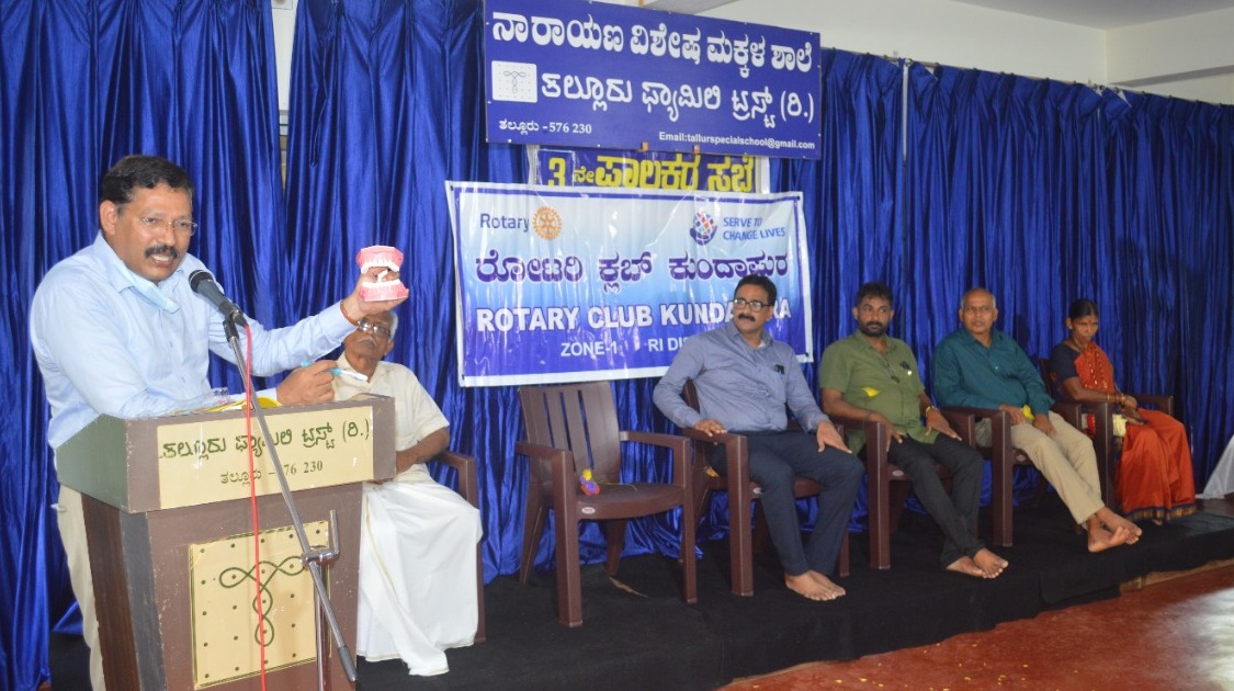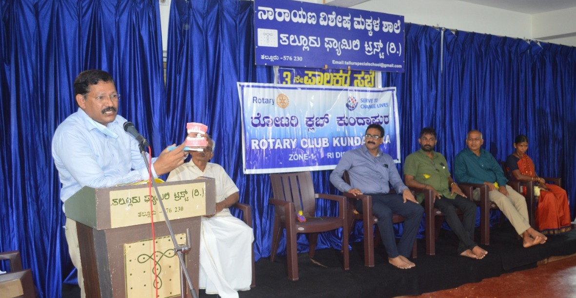 ರೋಟರಿ ಕ್ಲಬ್ ಕುಂದಾಪುರ ಮತ್ತು ನಾರಾಯಣ ವಿಶೇಷ ಮಕ್ಕಳ ಶಾಲೆಯಲ್ಲಿ ಹಲ್ಲಿನ ಸ್ವಚ್ಛತೆ ಮತ್ತು ಬಾಯಿಯ ಆರೋಗ್ಯದ ಬಗ್ಗೆ ಮಾಹಿತಿ ಕಾರ್ಯಾಗಾರ ಮತ್ತು ದಂತ ಸ್ವಚ್ಛತಾ ಕಿಟ್ ವಿತರಣಾ ಕಾರ್ಯಕ್ರಮ ಬುಧವಾರ ನಡೆಯಿತು.