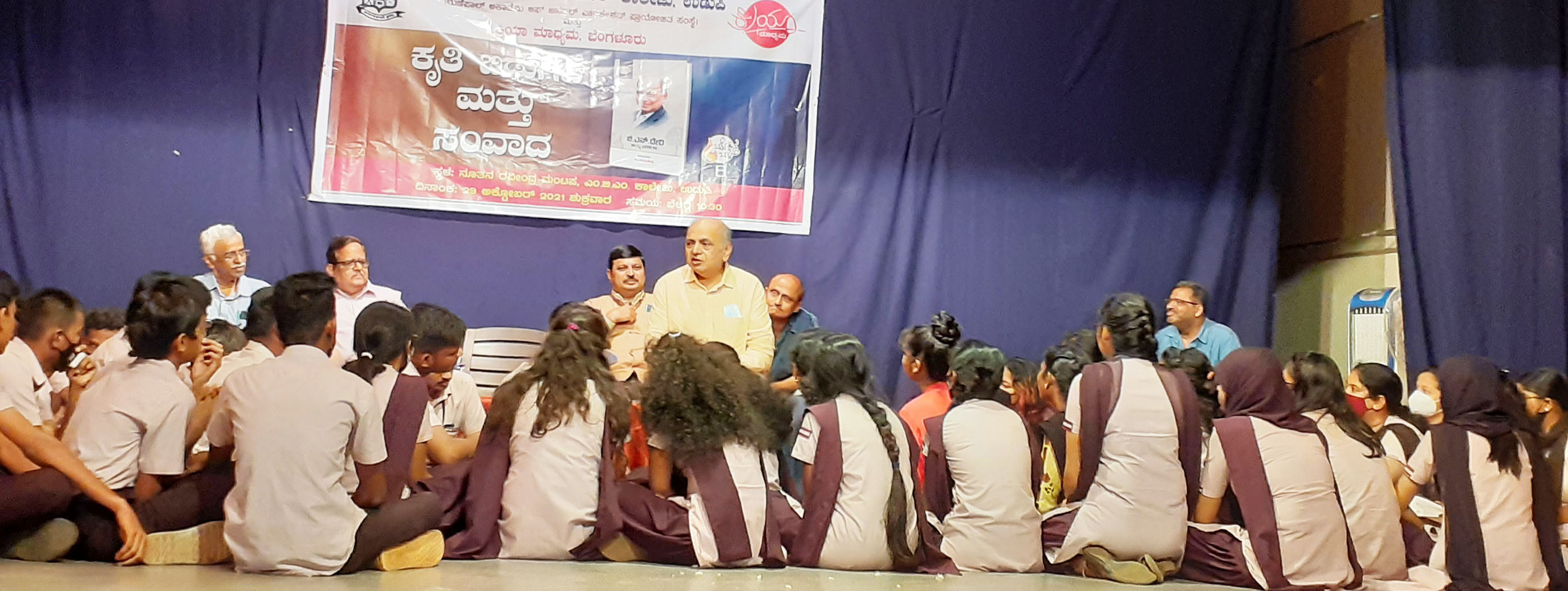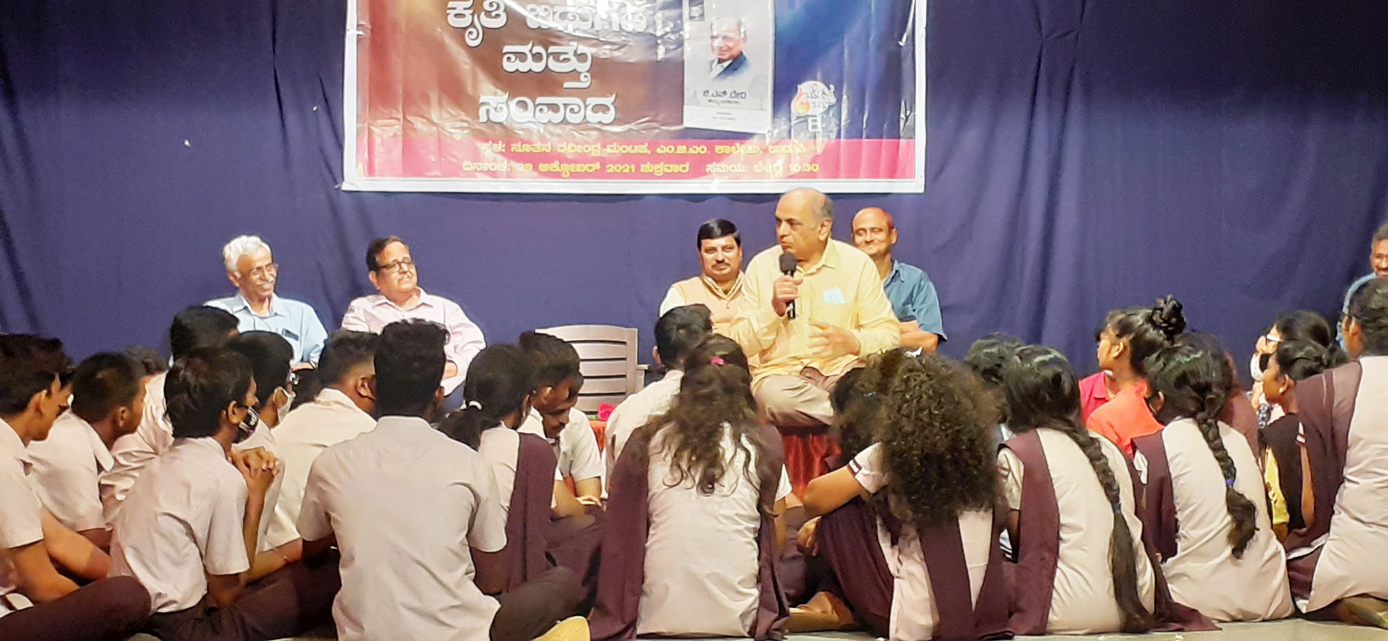 ಉಡುಪಿ: ವಿದ್ಯಾರ್ಥಿಗಳ ನಡುವೆ ಕುಳಿತು ಡಾ.ಜಿ.ಎನ್.ದೇವಿ ಪಟ್ಟಾಂಗ