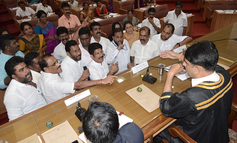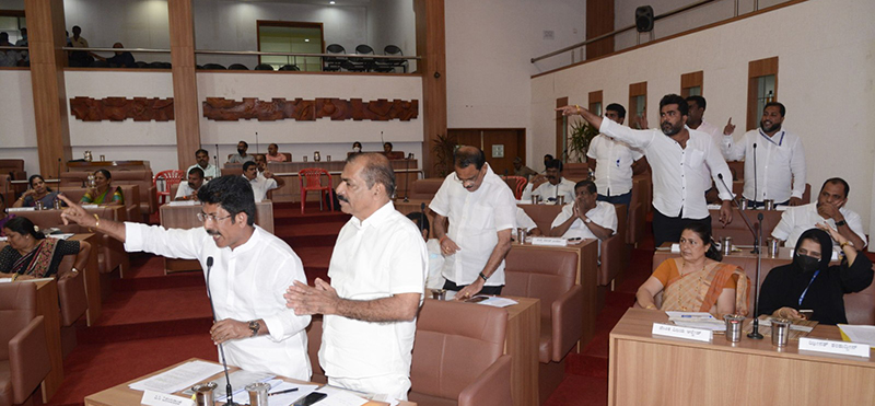ನಿಮ್ಮ ಆಡಳಿತ ಹೇಗಿತ್ತು ಎಂಬುದು ಗೊತ್ತಿದೆ. ಹಾಗಾಗಿಯೇ 36 ಸದಸ್ಯರಿಂದ ನಿಮ್ಮ ಸಂಖ್ಯೆ 14ಕ್ಕೆ ಇಳಿಕೆಯಾಗಿದ್ದು ಎಂದು ಸುಧೀರ್ ಶೆಟ್ಟಿ ಕಣ್ಣೂರು ಹೇಳಿಕೆ ವಿಪಕ್ಷ ಸದಸ್ಯರನ್ನು ಕೆರಳಿಸಿತು. ಸದನದಲ್ಲಿ ಈ ರೀತಿಯ ಹೇಳಿಕೆ ನೀಡುವುದು ಸರಿಯಲ್ಲ. ವಿಪಕ್ಷವನ್ನು ಕಡೆಗಣಿಸುವುದು ಸರಿಯಲ್ಲ ಎಂದು ಹೇಳುತ್ತಾ ವಿಪಕ್ಷ ಸದಸ್ಯರು ಮೇಯರ್ ಪೀಠದೆದುರು ತೆರಳಿ ಪ್ರತಿಭಟಿಸಿದರು.
