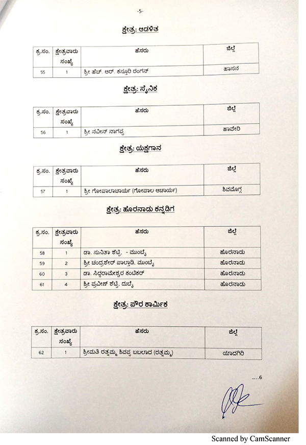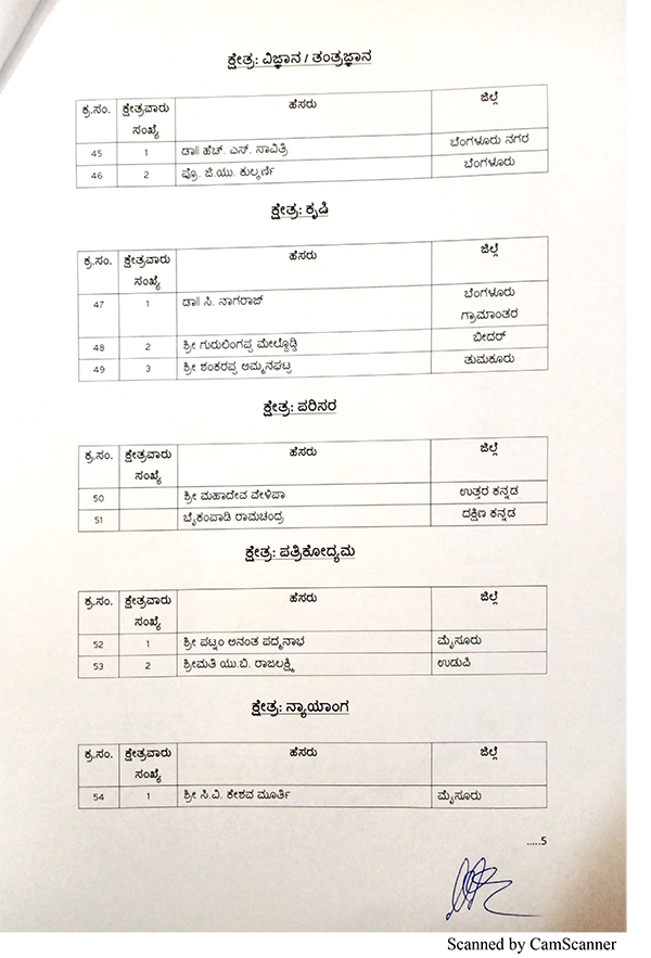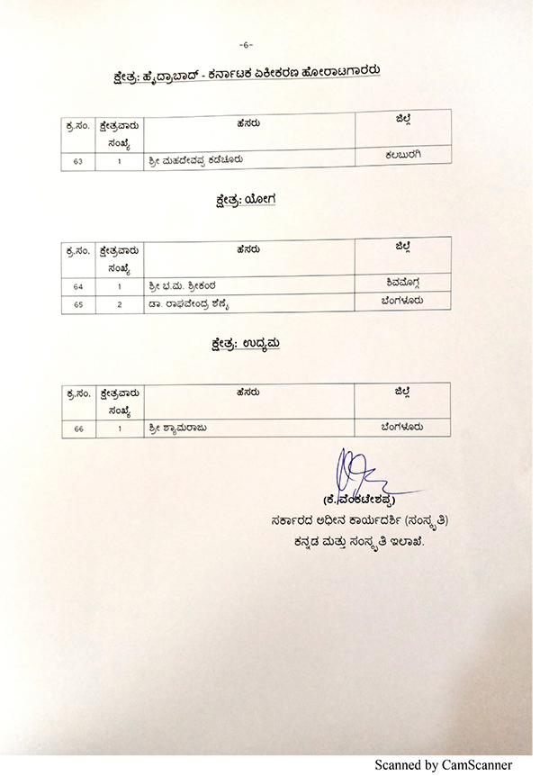 ► ರಾಜ್ಯೋತ್ಸವ ಪ್ರಶಸ್ತಿ: ಸಾಹಿತ್ಯ: ಮಹಾದೇವ ಶಂಕನಪುರ(ಚಾಮರಾಜನಗರ), ಪ್ರೊ.ಡಿ.ಟಿ.ರಂಗಸ್ವಾಮಿ(ಚಿತ್ರದುರ್ಗ), ಜಯಲಕ್ಷ್ಮಿ ಮಂಗಳಮೂರ್ತಿ(ರಾಯಚೂರು), ಅಜ್ಜಂಪುರ ಮಂಜುನಾಥ್(ಚಿಕ್ಕಮಗಳೂರು), ಡಾ.ಕೃಷ್ಣ ಕೋಲ್ಹಾರ ಕುಲಕರ್ಣಿ(ವಿಜಯಪುರ) ಹಾಗೂ ಸಿದ್ದಪ್ಪ ಬಿದರಿ(ಬಾಗಲಕೋಟೆ).