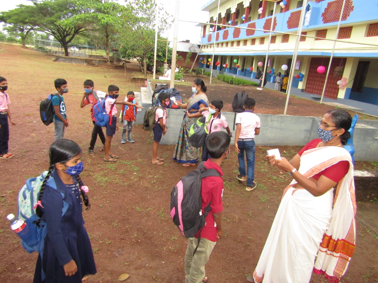 18 ತಿಂಗಳ ಬಳಿಕ ಶಾಲೆಯತ್ತ ಹೆಜ್ಜೆ ಹಾಕಿದ ಮಕ್ಕಳನ್ನು ಶಾಲಾ ಆಡಳಿತ ಸಮಿತಿ, ಶಿಕ್ಷಕರು ಹಾಗೂ ರಕ್ಷಕ ಶಿಕ್ಷಕ ಸಂಘದ ವತಿಯಿಂದ ಸ್ವಾಗತಿಸಲಾಯಿತು.