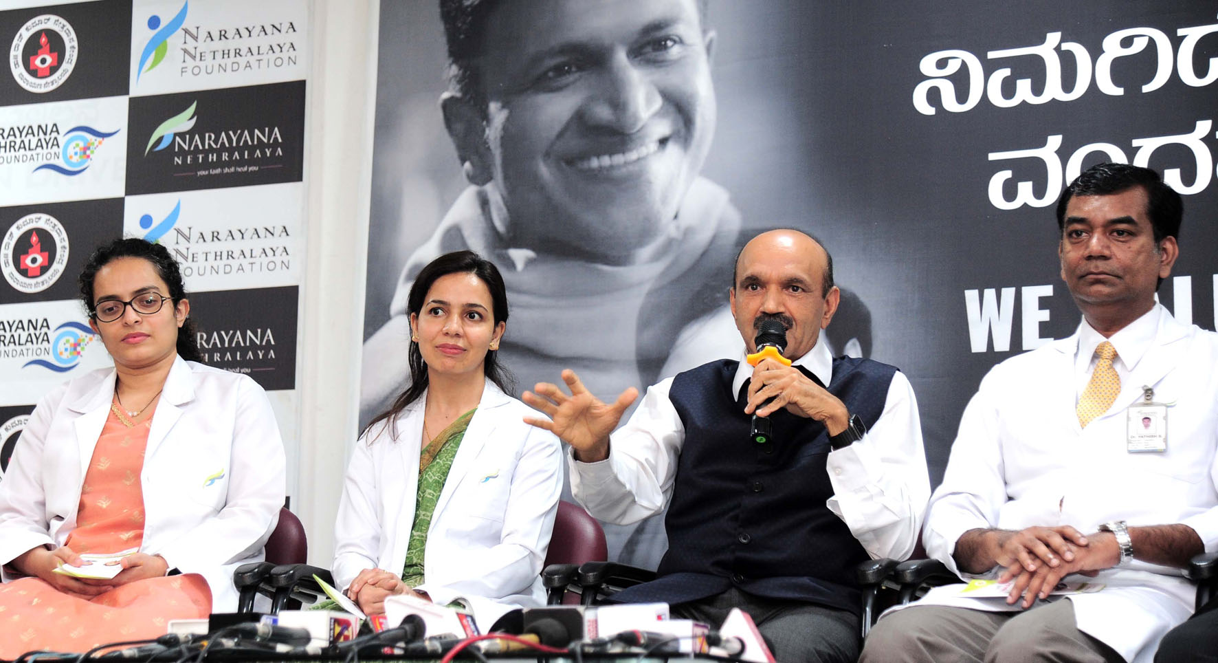 ಬೆಂಗಳೂರು, ನ.1: ನಟ ಪುನೀತ್ ರಾಜ್ಕುಮಾರ್ ಅವರ ಕಣ್ಣುಗಳನ್ನು ಯುವತಿ ಸೇರಿ ನಾಲ್ವರಿಗೆ ಜೋಡಿಸಲಾಗಿದ್ದು, ಇದರಿಂದ ನಾಲ್ವರಿಗೆ ದೃಷ್ಟಿ ಬಂದಿದೆ ಎಂದು ನಾರಾಯಣ ನೇತ್ರಾಲಯದ ಡಾ.ಭುಜಂಗ ಶೆಟ್ಟಿ ತಿಳಿಸಿದರು.