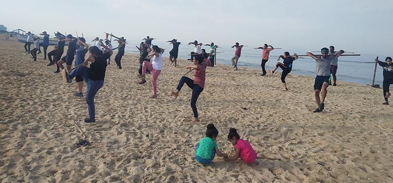 ಕನ್ನಡ ರಾಜ್ಯೋತ್ಸವದ ಅಂಗವಾಗಿ ಸಮುದ್ರ ಕಿನಾರೆಯಲ್ಲಿ ಲಾಠಿ ಯೋಗ
